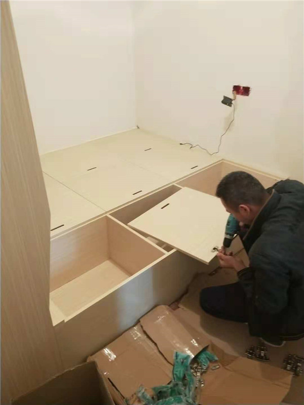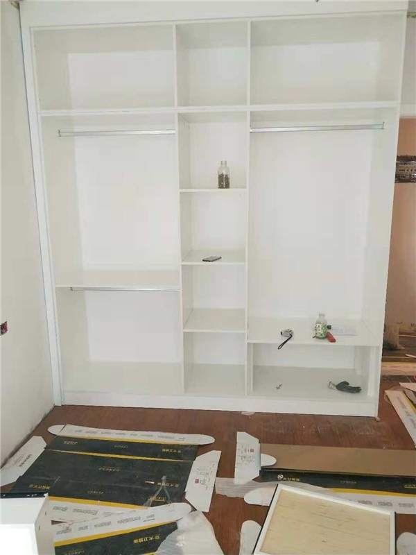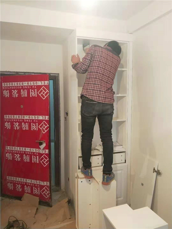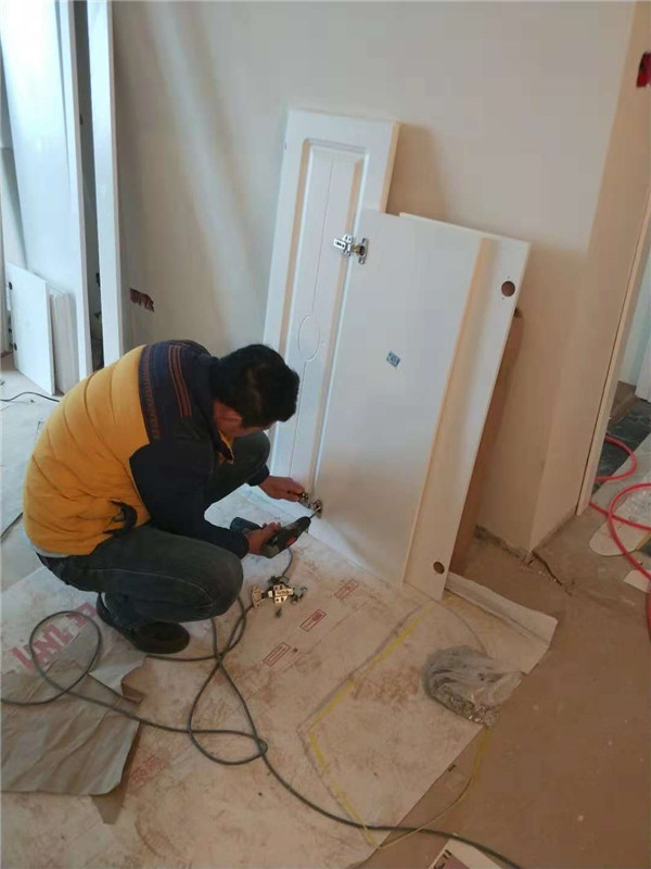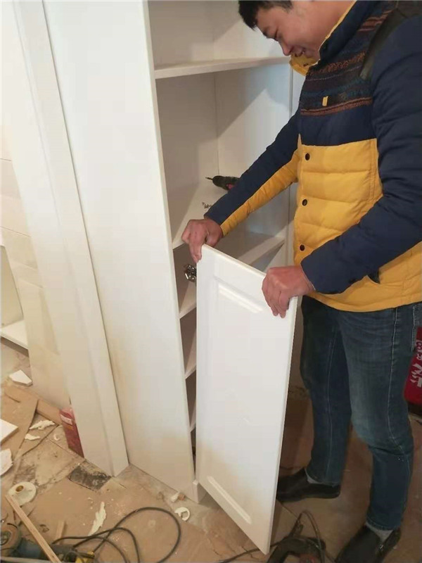 開始安裝啦~蘇香桐色和暖白色的柜體柜門搭配,安裝使用諾米精品緩沖鉸鏈哦
