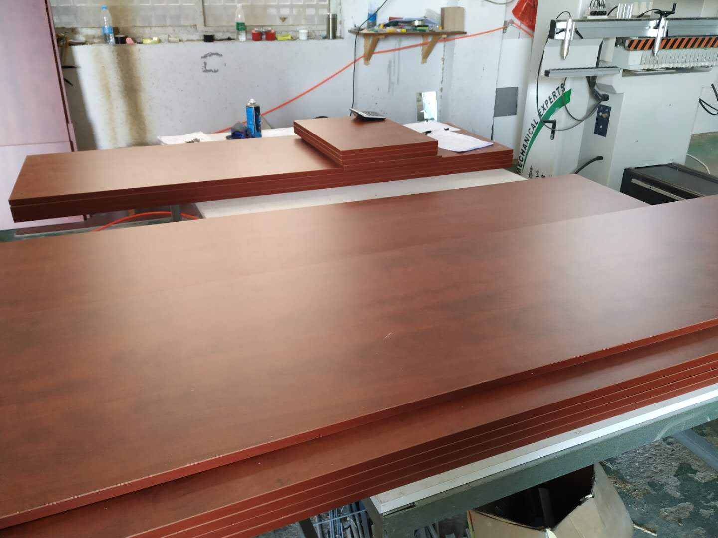 圖1圖2是入門衣柜板,板材正在打孔中。
