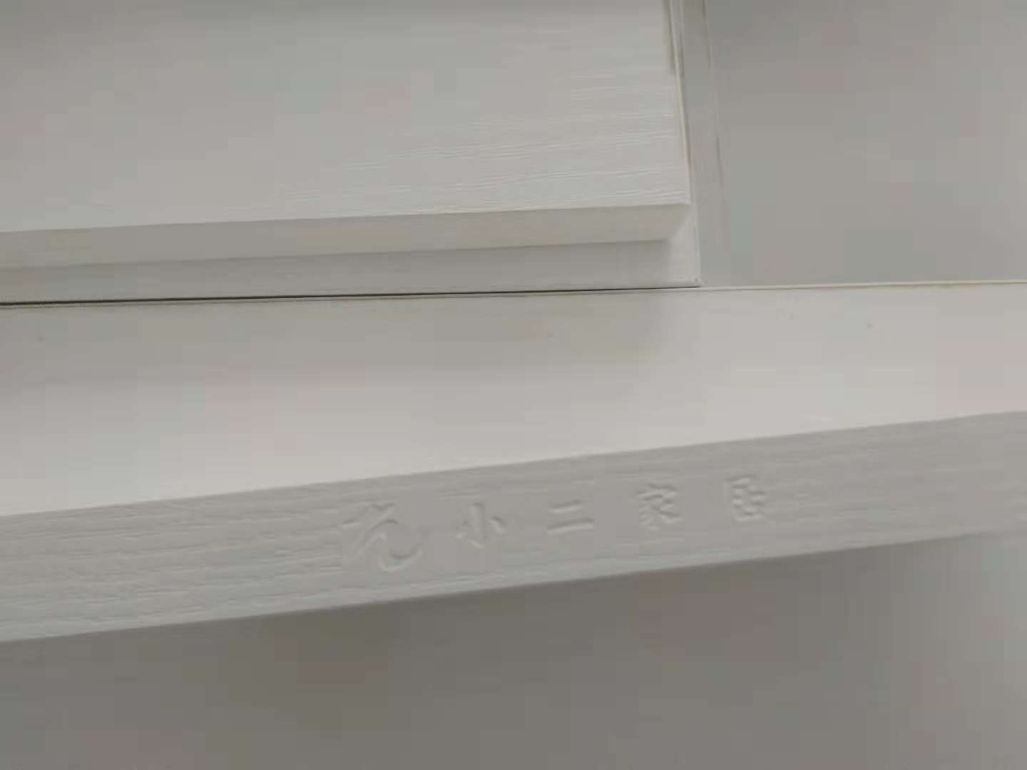圖1圖2是已經封好邊的門板板材,封邊條上印有小二家居的logo!