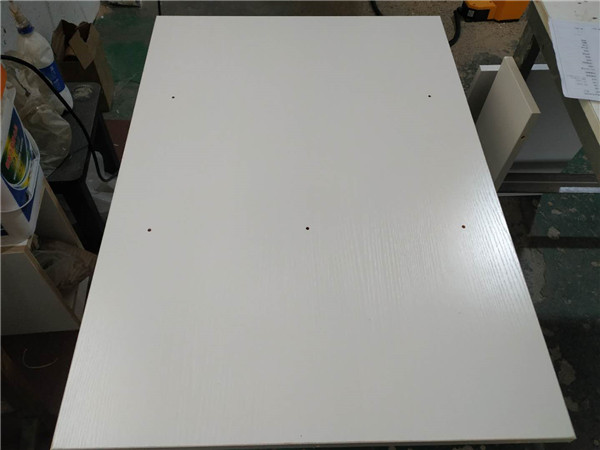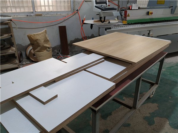 柜體側板和底板已經封好邊打好孔啦,圖2是抽屜抽面的板材在封邊中,柜體板材都使用平安樹暖白色實木多層板制作。