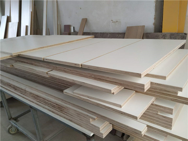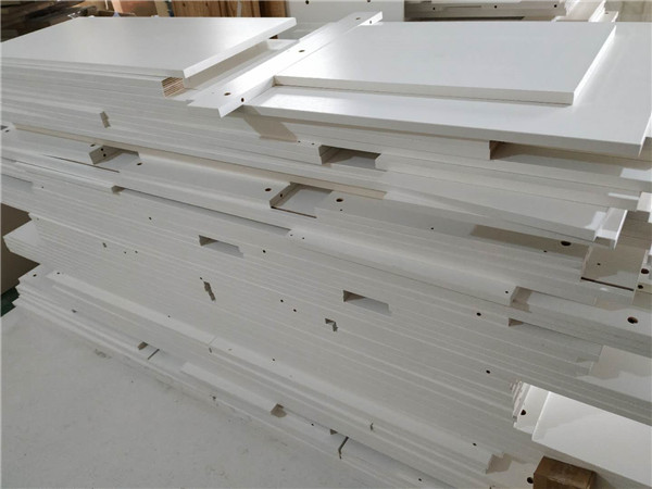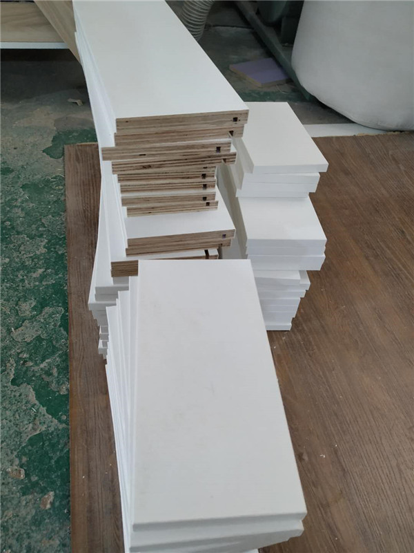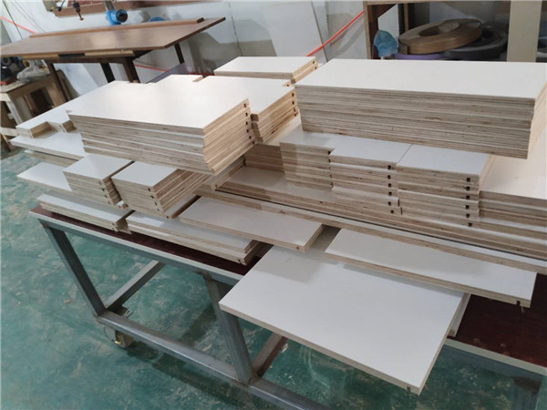 圖4圖5是待封邊的柜體側板和底板,板材使用平安樹暖白色實木多層板制作。