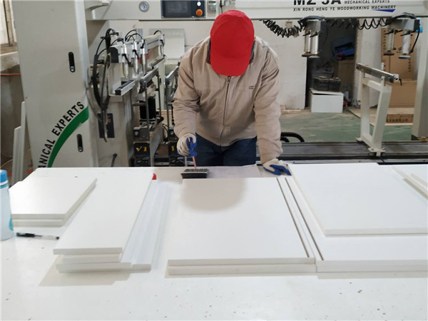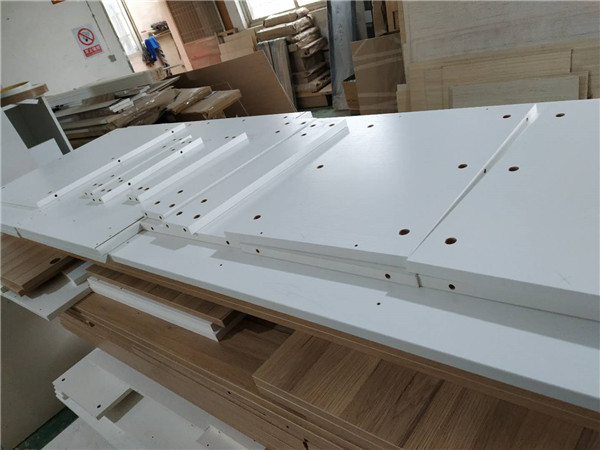 白色的板材是櫥柜和衣柜板材,已經打好孔了,打孔使用專門的機器,不會出現毛邊的情況哦!