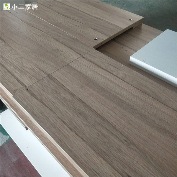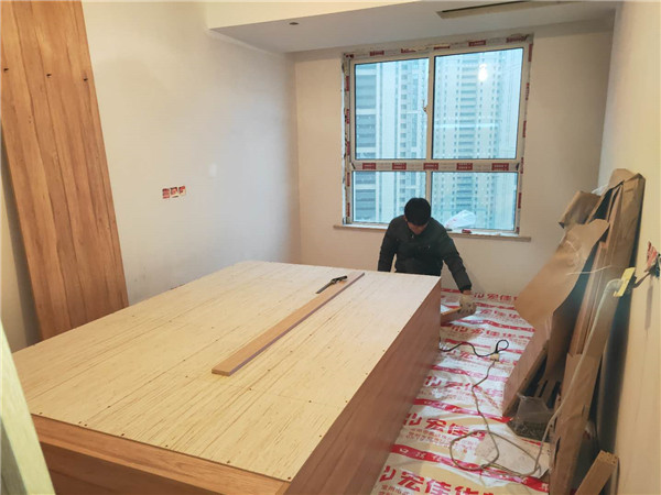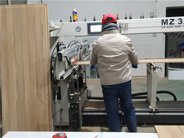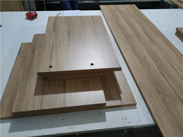 棕黃色帶天然木紋的是平安樹平安樹沙灘漫步色號的實木多層板材,正在打孔的榻榻米柜體的板材,