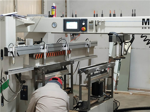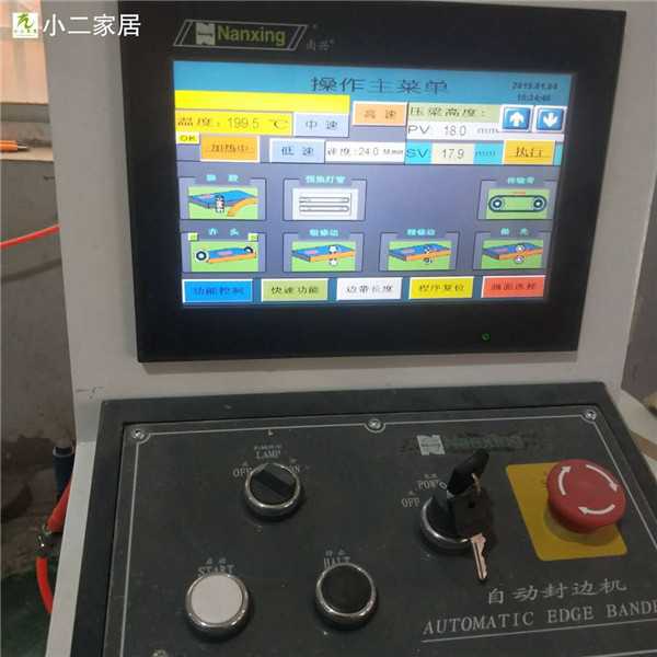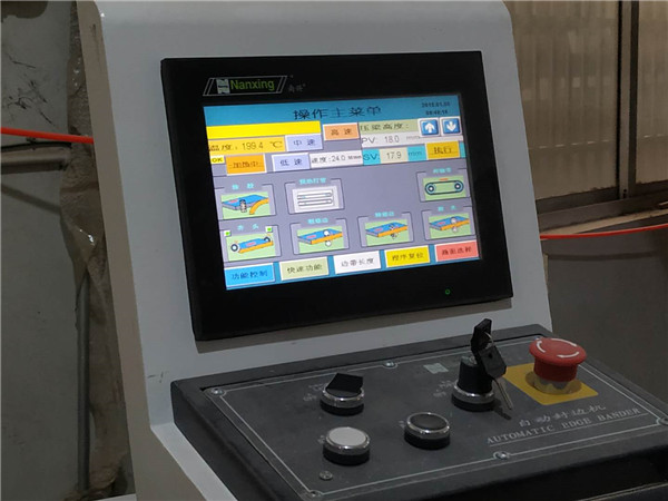還剩下玻璃窗的板材和抽屜抽面的板材封邊中,機器正在加熱中,到達200℃就能開始封邊啦。