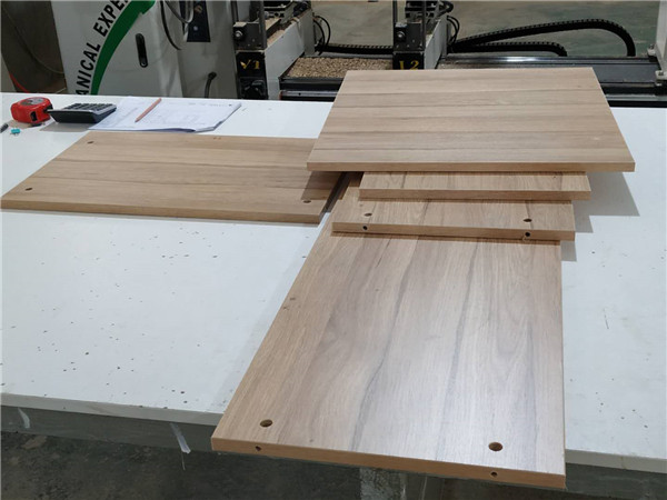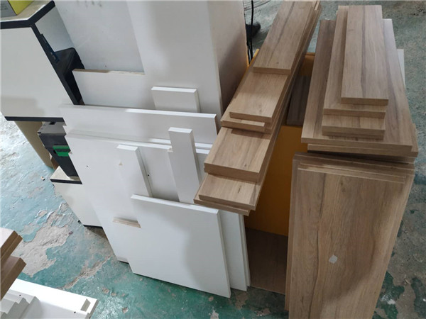 柜體板裁好,可以看一下裁的邊,很直,沒有一點爆邊的痕跡。
