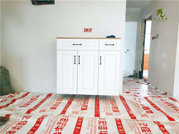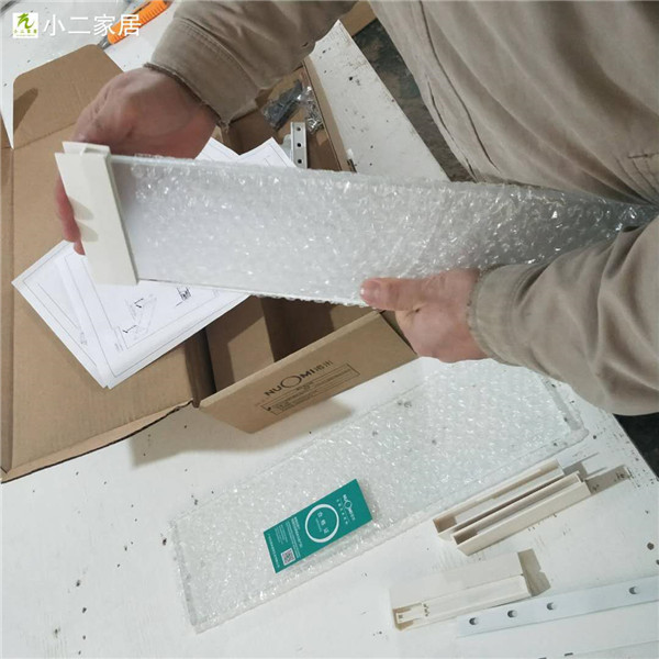 白色板材的封邊條上印有小二家居的logo的!