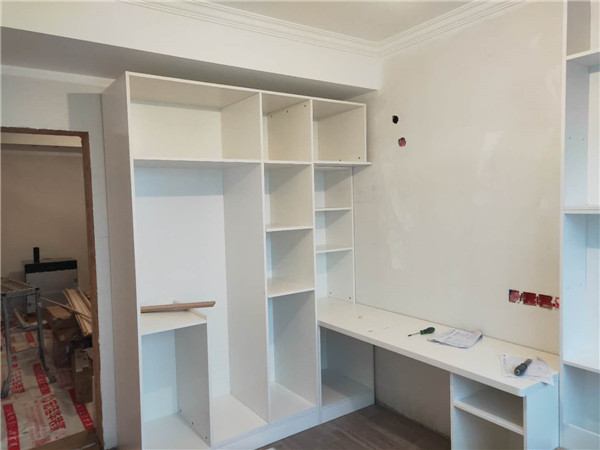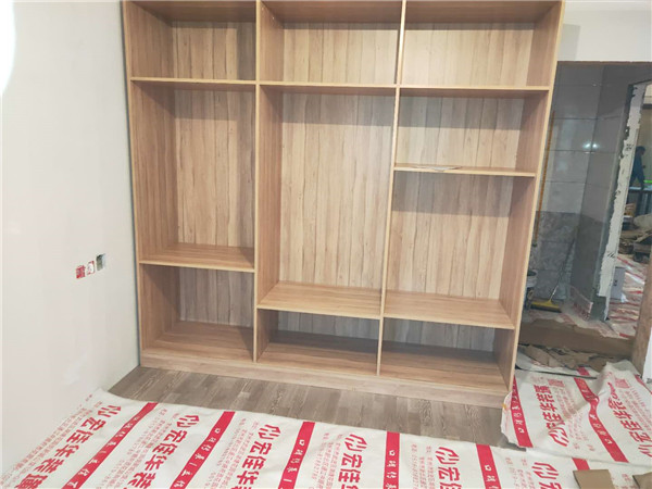 還有正在裁板的板材是鞋柜、次臥衣柜、電視柜、次臥書柜和小高柜的柜體板材,