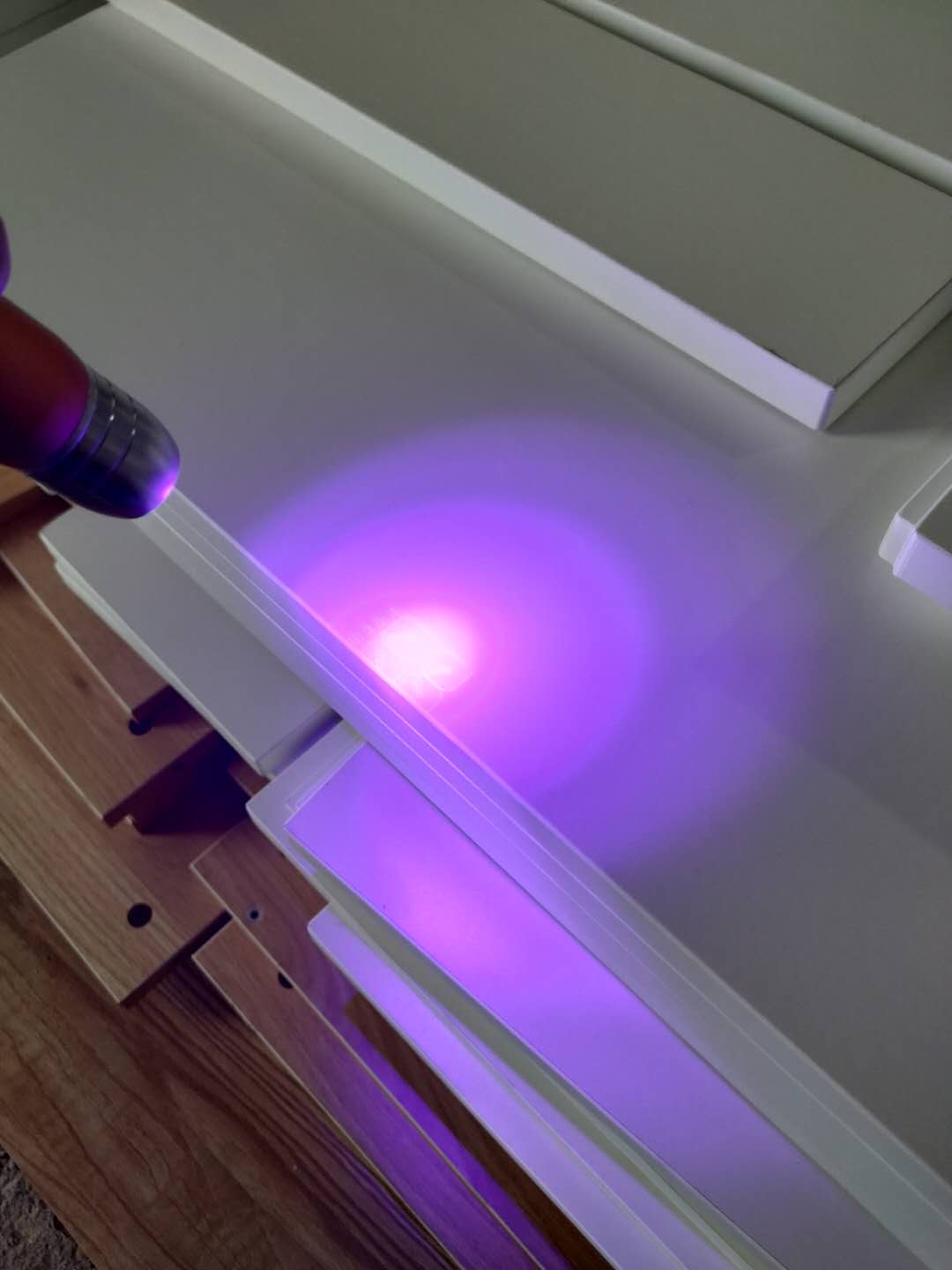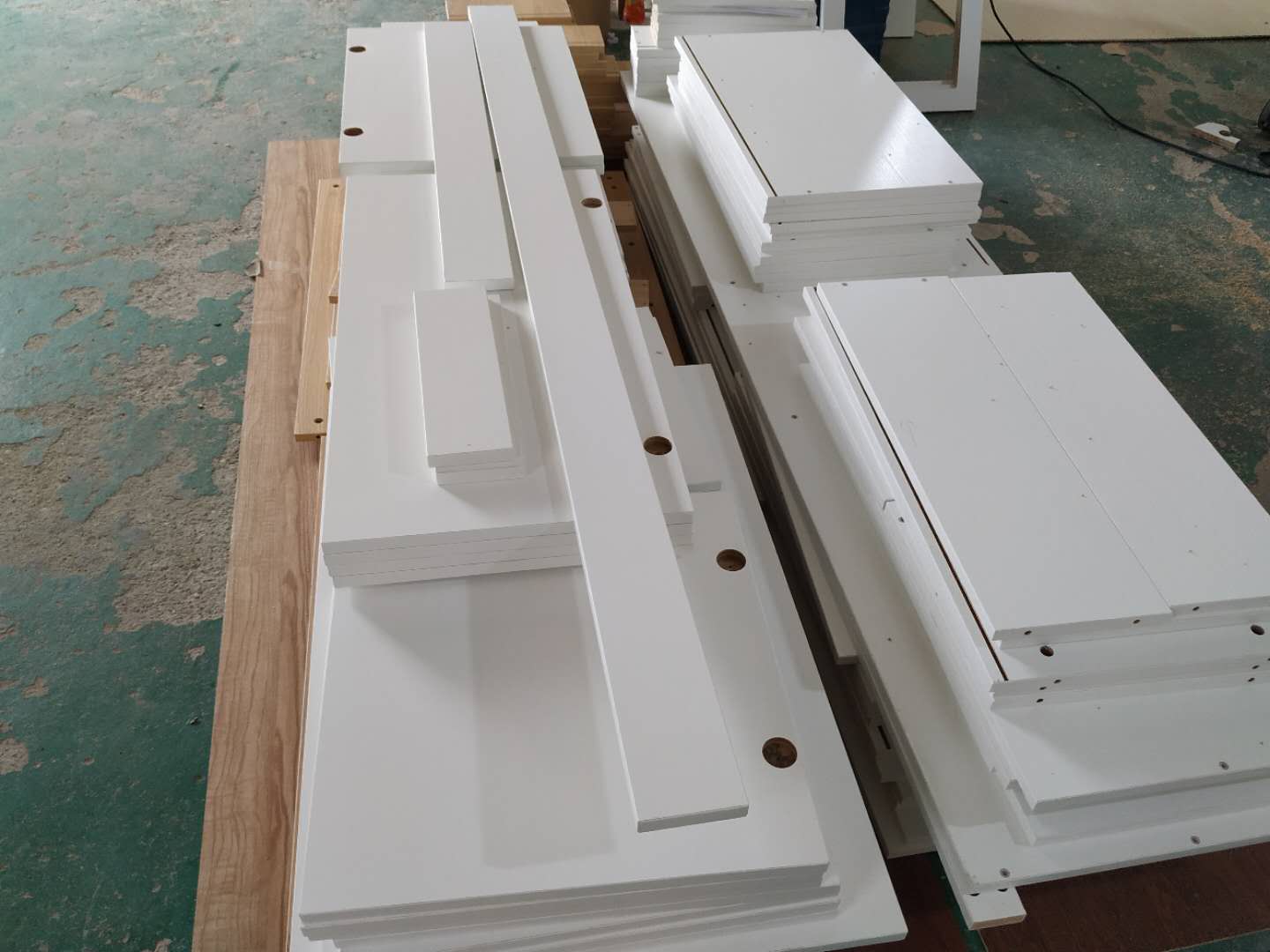 開始制作!平安樹實木多層柜體板打孔中,有平安樹高級藍光防偽哦!