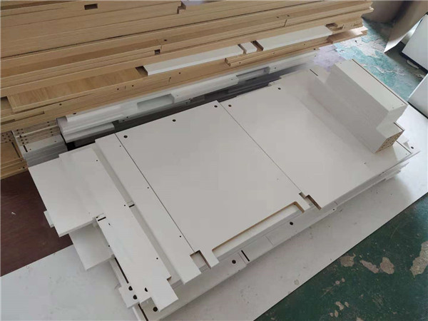 圖1是入門鞋柜板打孔中,圖2圖3是暖白色的門板,已經打好孔啦,圖4圖5是做浴室鏡柜和陽臺吊柜的板,板材也已經打好孔啦。