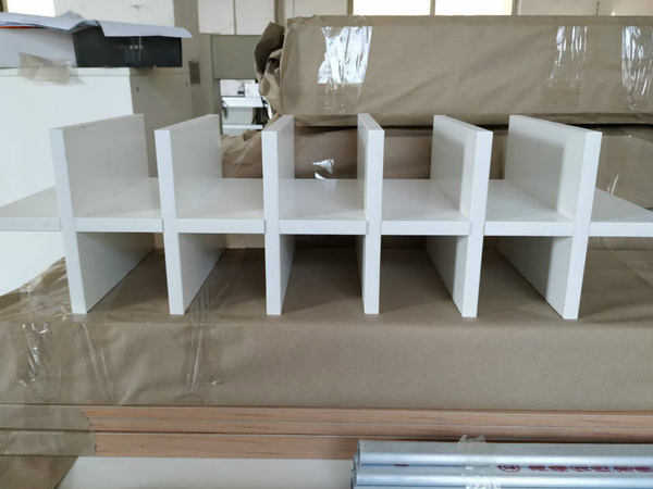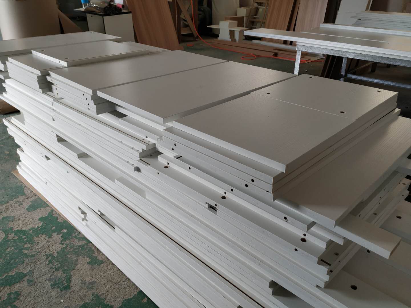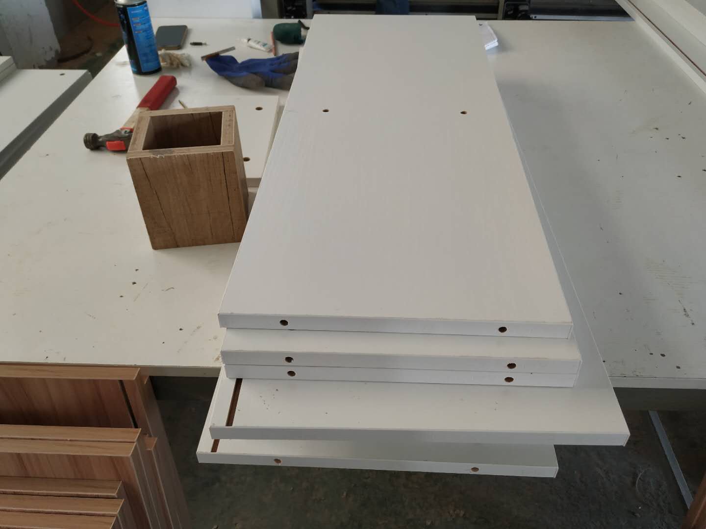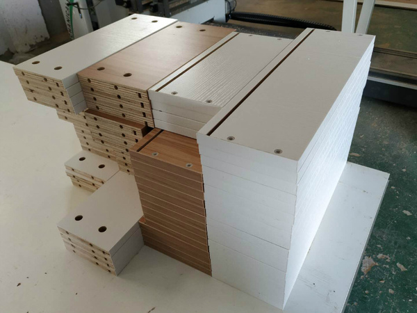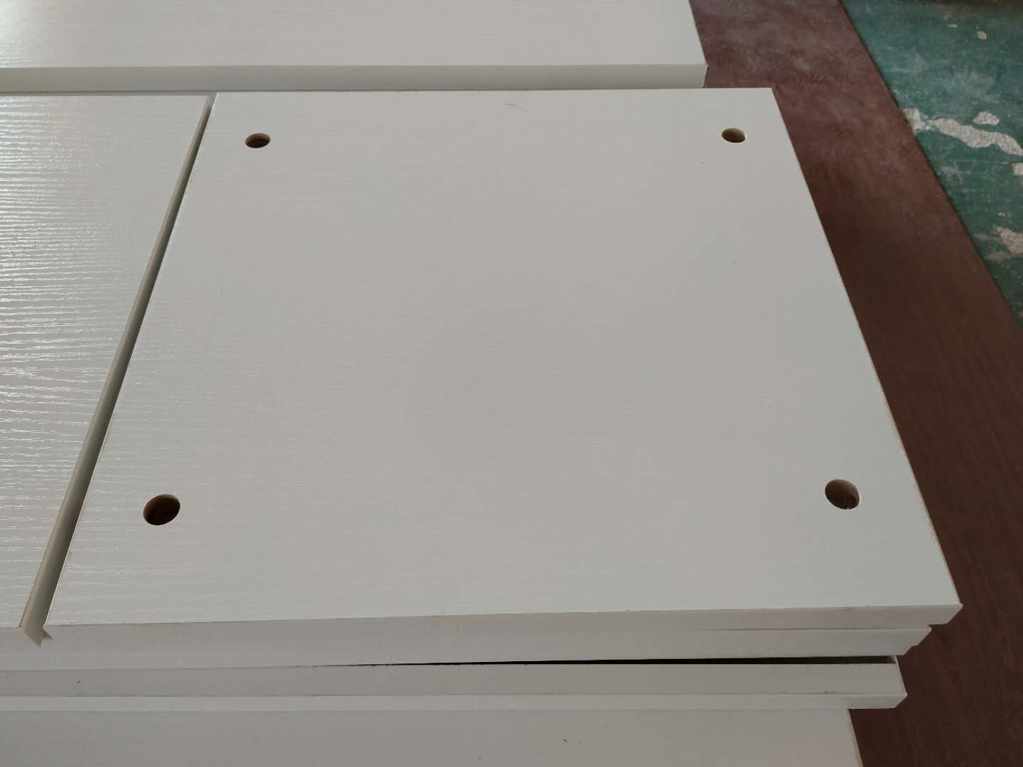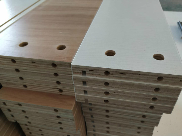 圖3的方形板是櫥柜吊柜的板,櫥柜和衣帽間的板材已經打孔完畢。