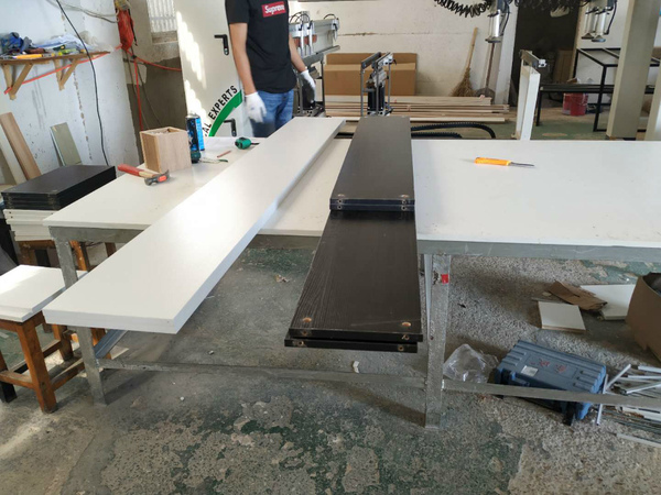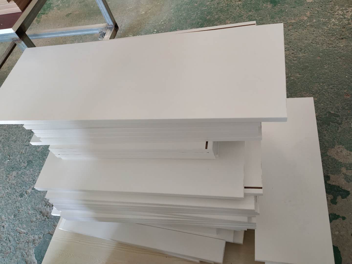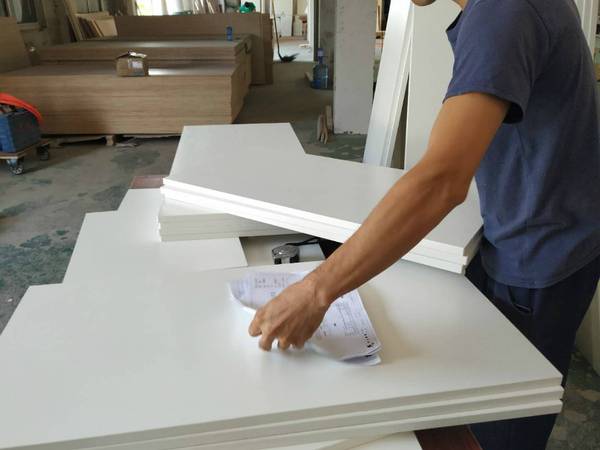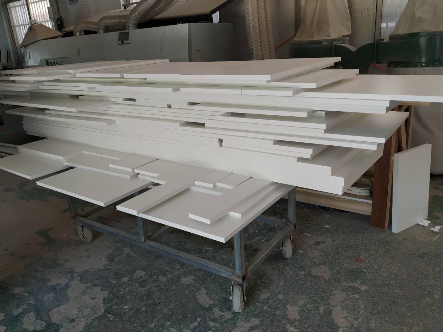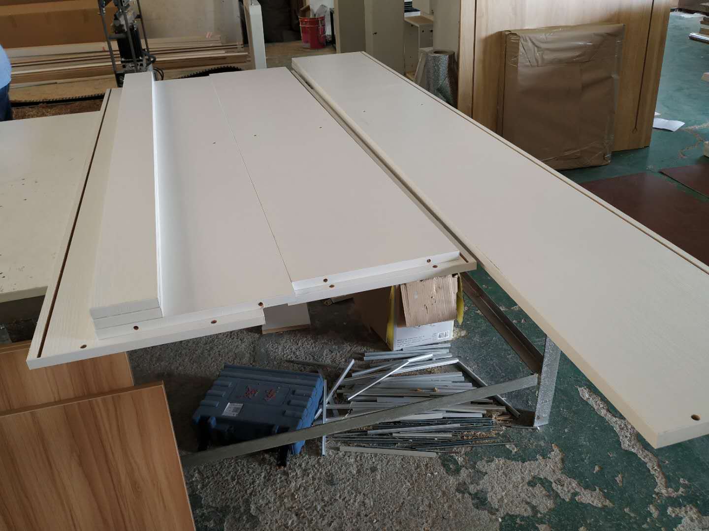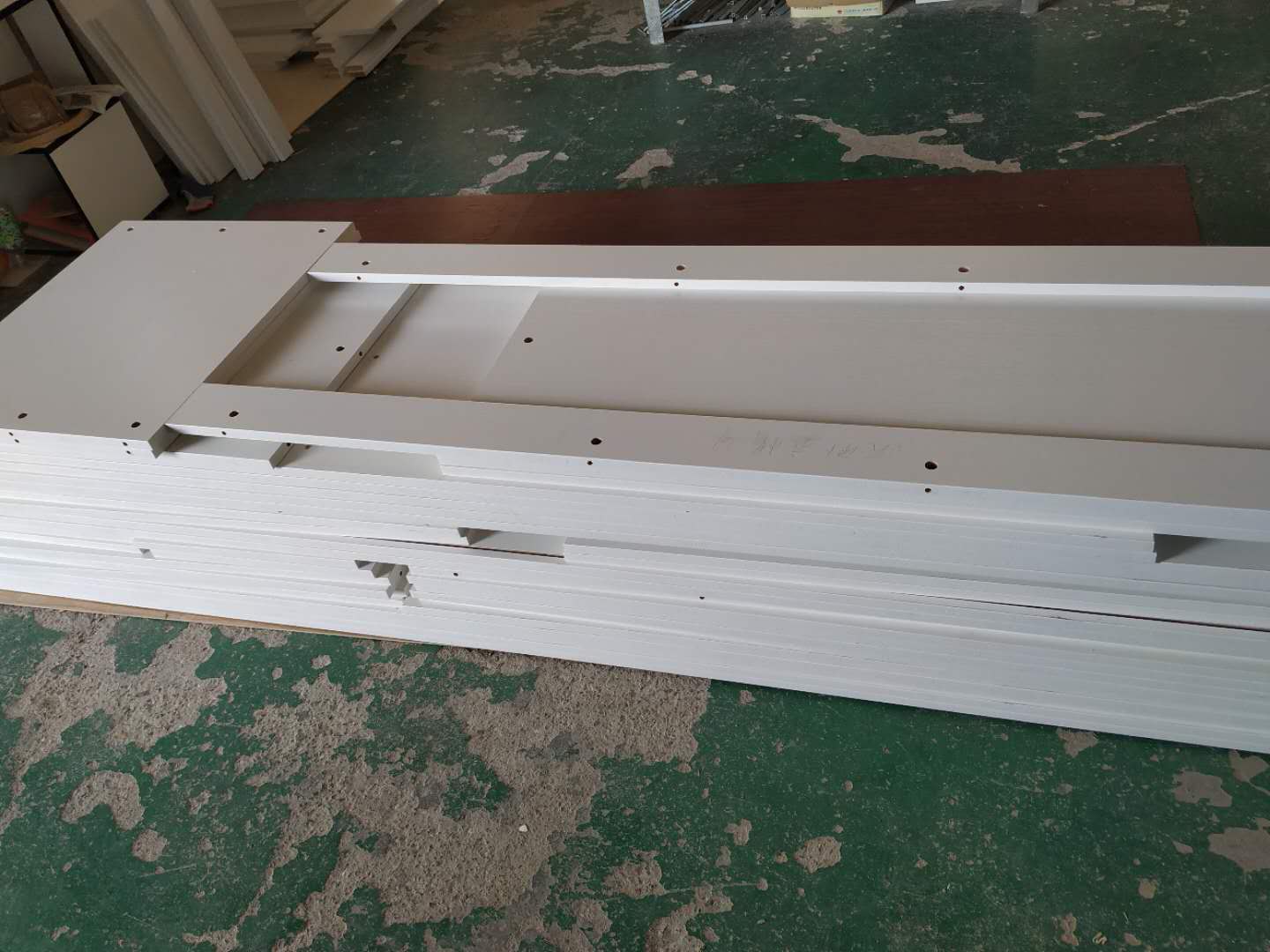 圖3的方形板是櫥柜吊柜的板,櫥柜和衣帽間的板材已經打孔完畢。
