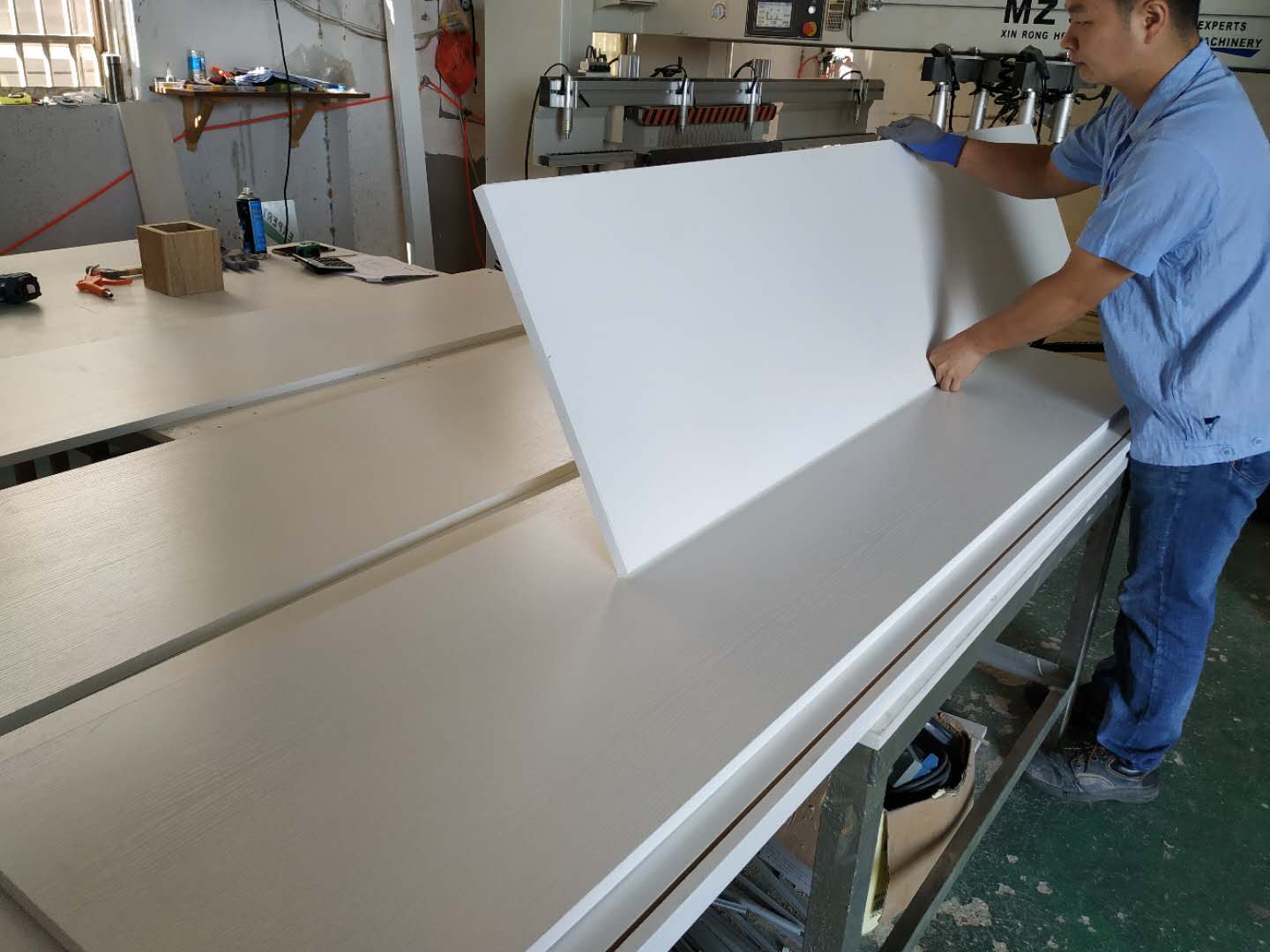 圖3是門板,正在做清潔工作,把多余的膠水洗掉。