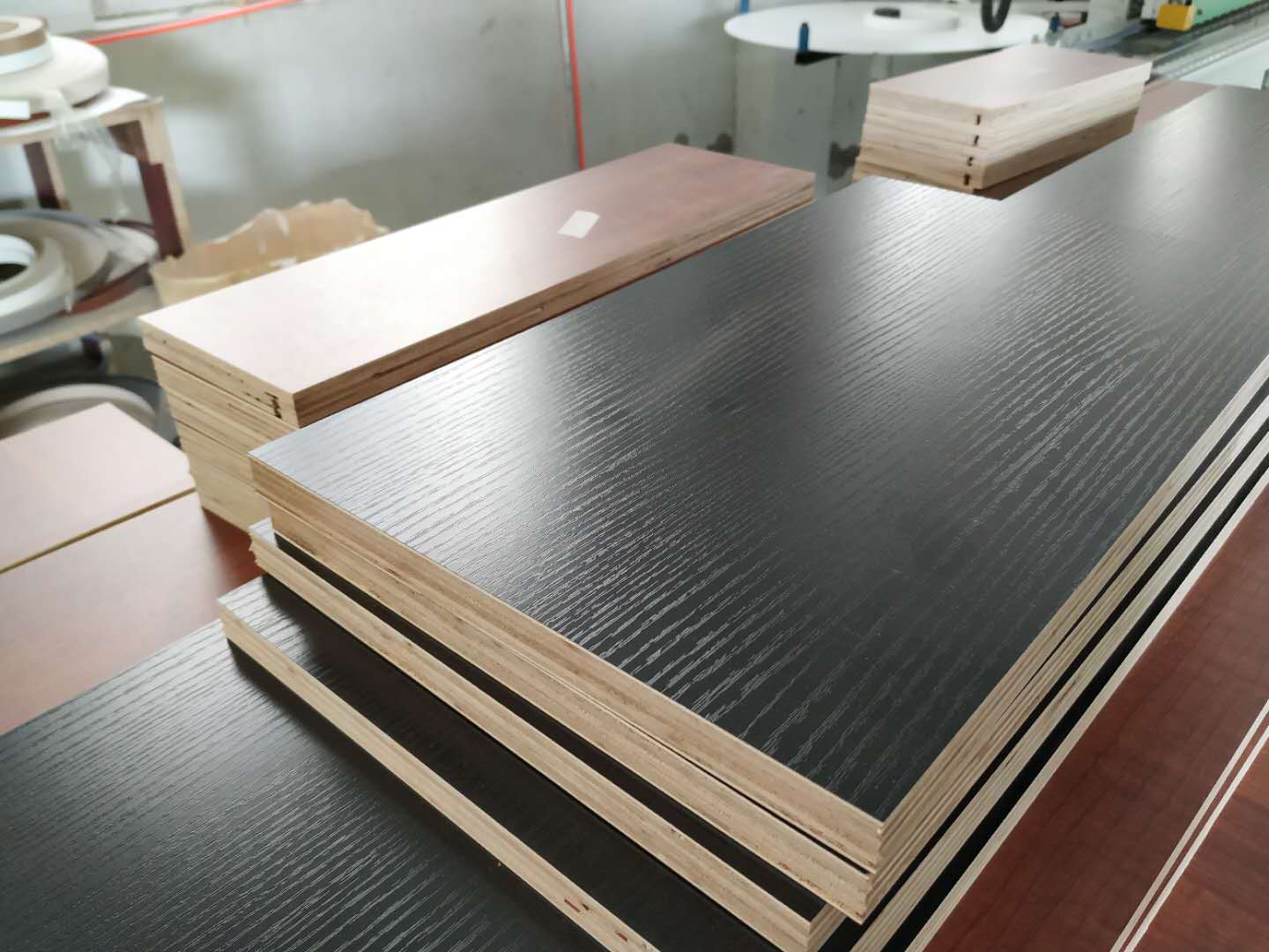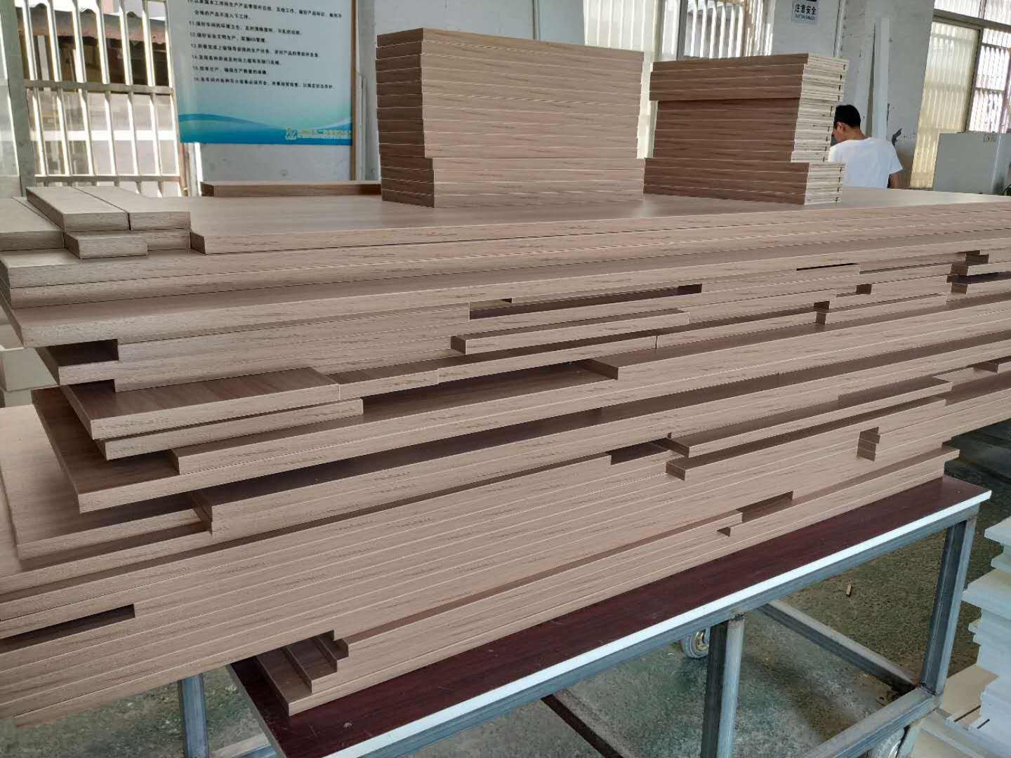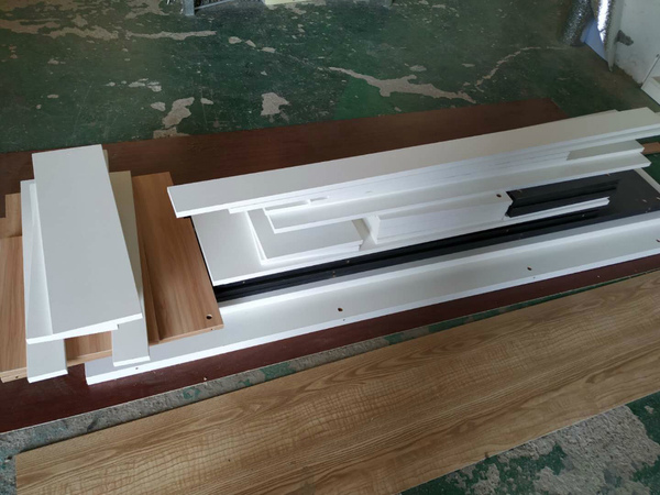圖4圖5是做榻榻米的板,板材使用平安樹淺胡桃色的實木多層板,上面待封邊的是榻榻米的抽屜板。