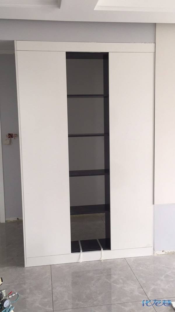 圖5使用平安樹黑色板材,是做雙面隔斷柜的,板材待封邊~