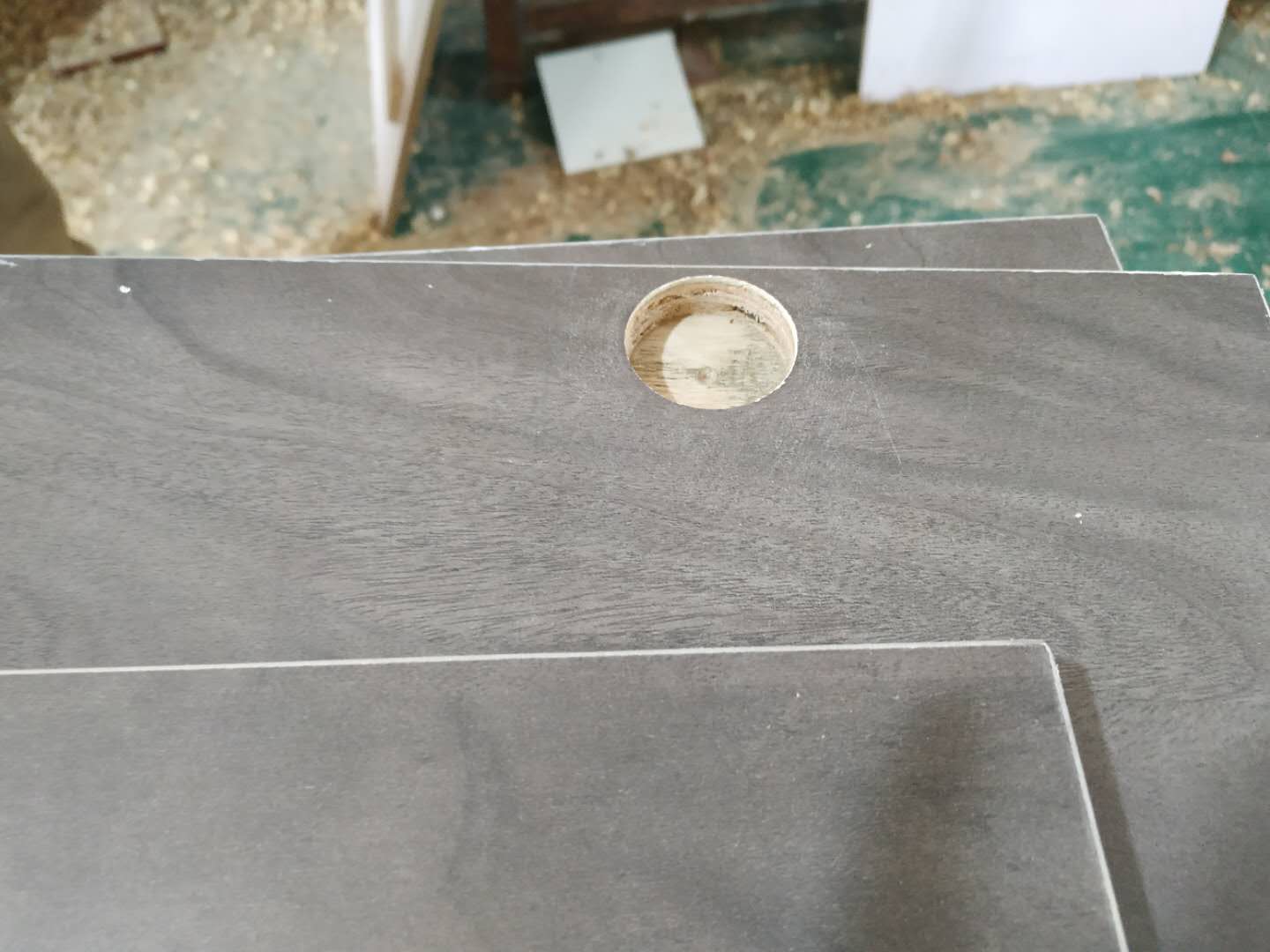 門板打孔中,打的圓孔是用來裝鉸鏈的,門板色號用的也是平安樹瑞典雨幕的色號!