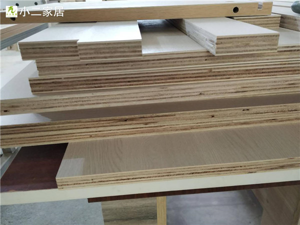 另一種顏色的板材是平安樹銀沙榆色實木多層板,用來制作櫥柜板,板材裁板中。