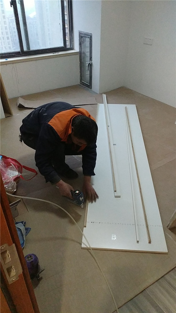 師傅上門安裝啦,先來一組安裝中的圖片~柜體已經拼裝的差不多啦