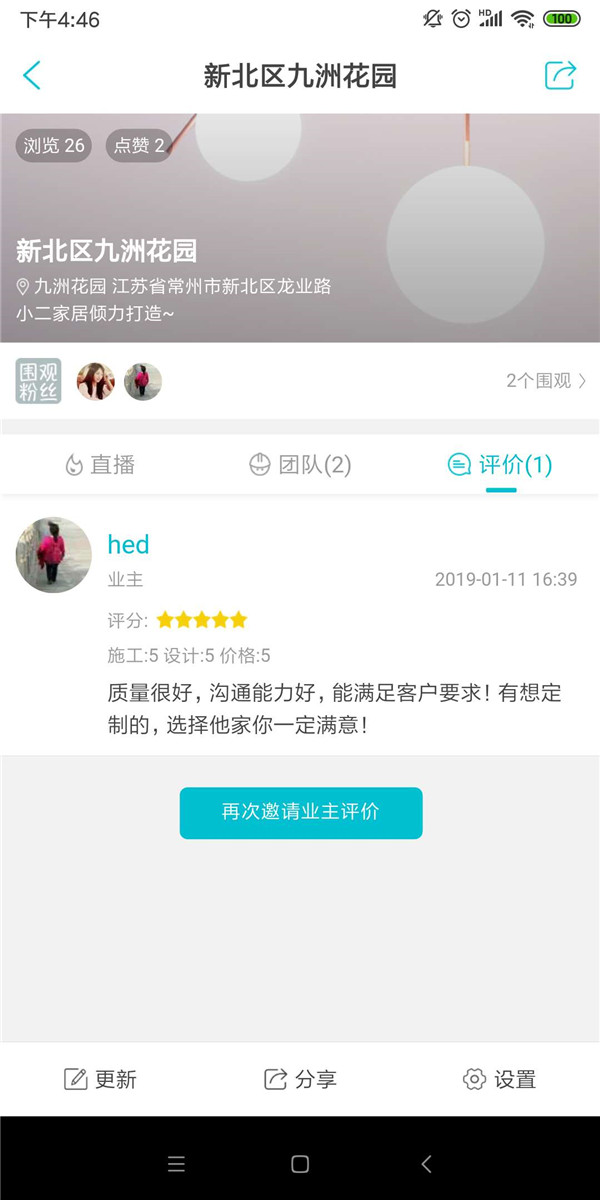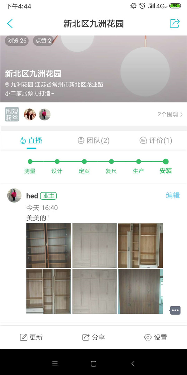 安裝完畢!感謝業主在小程序中的五星好評!