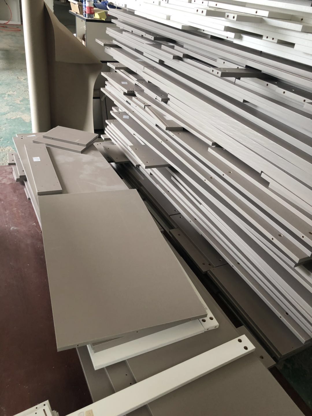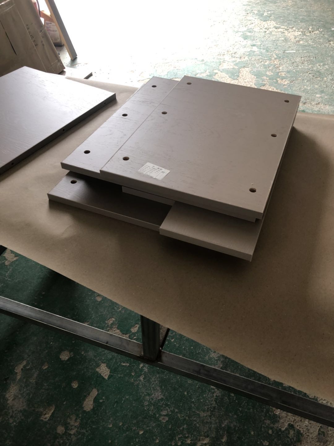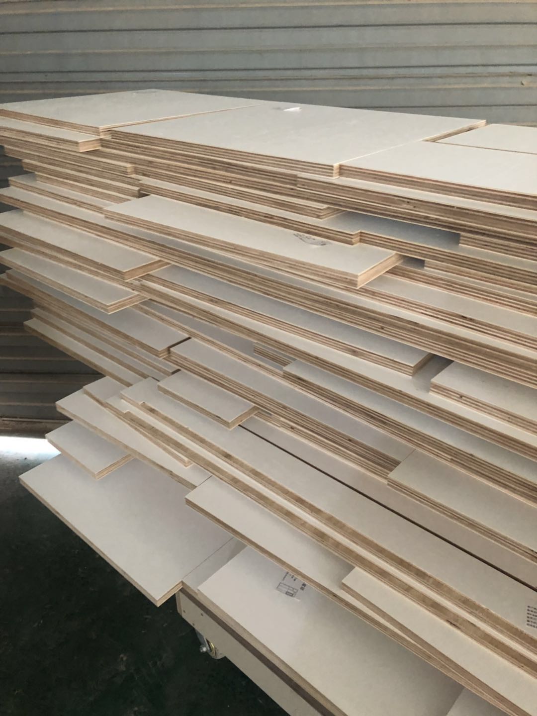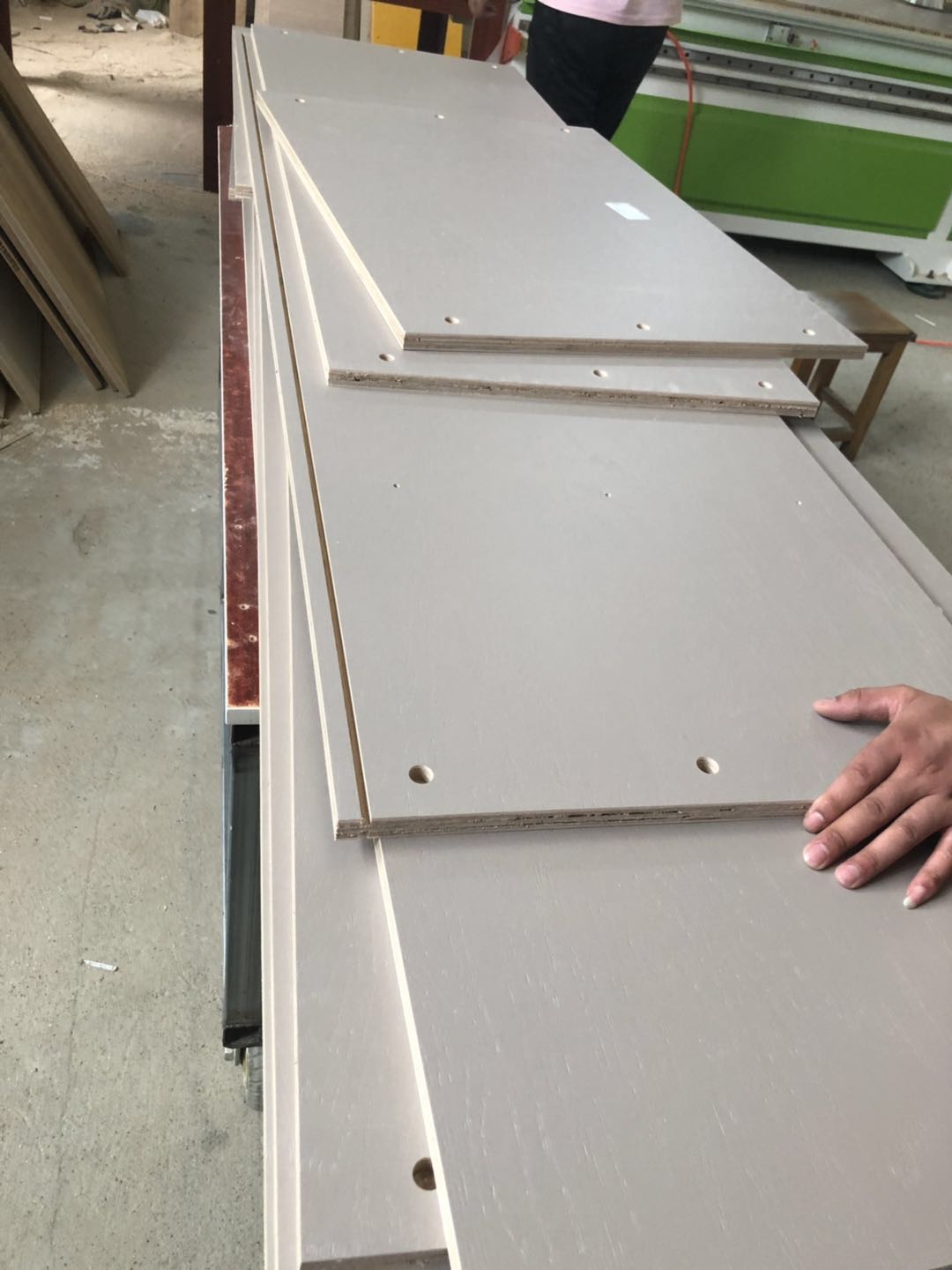 衣柜開板了,板材使用平安樹實木多層進口暖白制作,真材實料,有高級的藍光防偽標識,圖4-6是榻榻米鞋柜書桌等柜體板,板材使用金蘋果時尚灰制作。