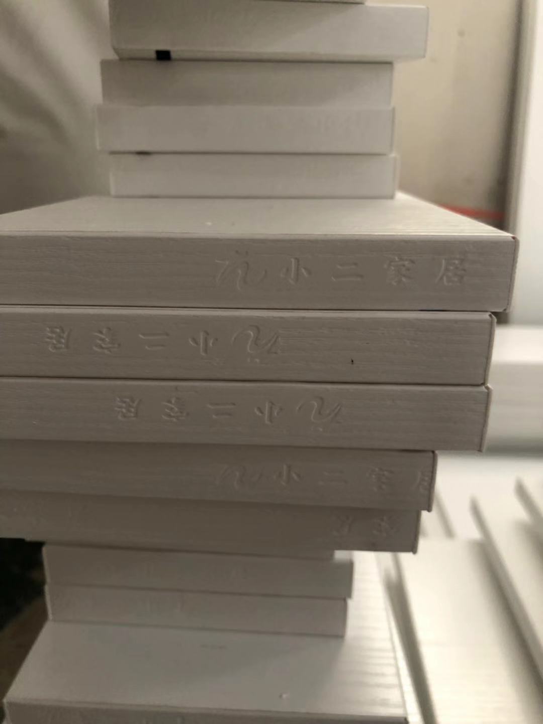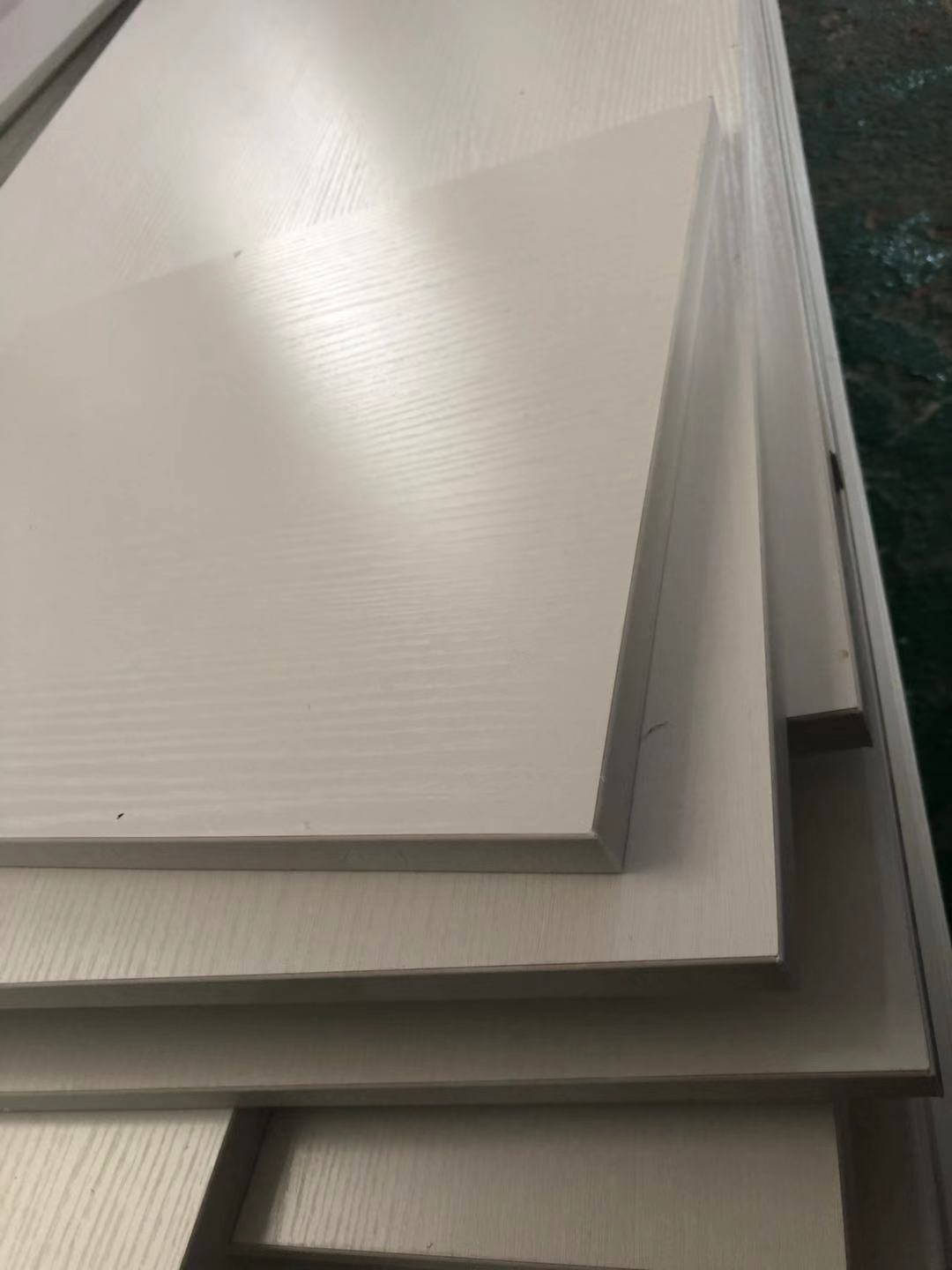 柜門板材封邊中,封邊使用專門的機器封邊,達到高溫200°C封邊哦,封邊使用的熱熔膠顆粒膠用的是進口法國波士顆粒膠,封邊條上印有小二家居的logo。