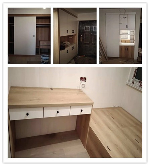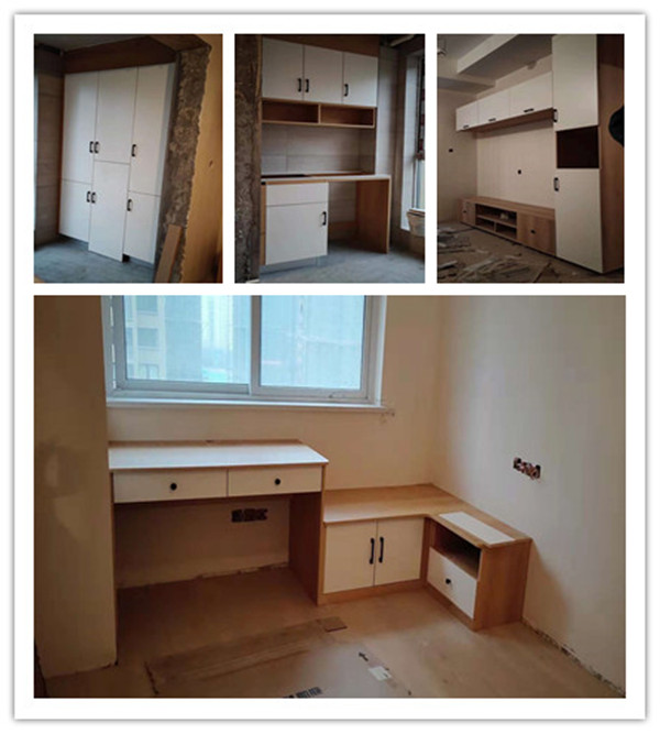 板材使用平安樹原木時光色實木多層板制作,門板制作雙飾面門板,采用霧麻暖白色制作。