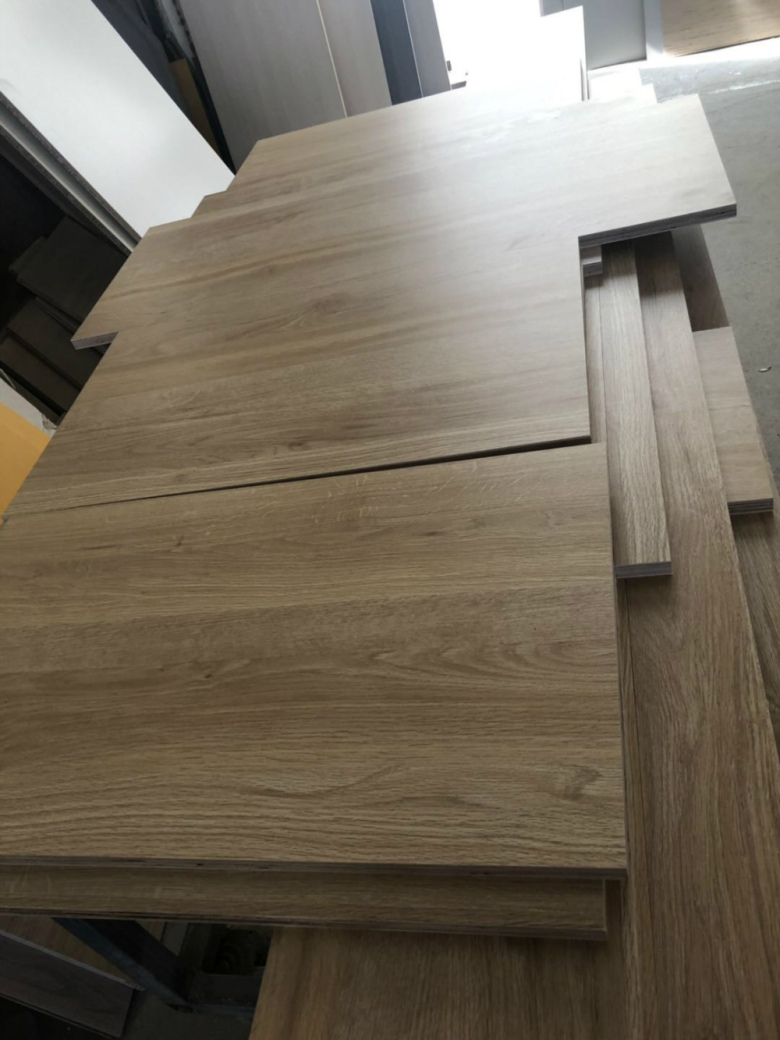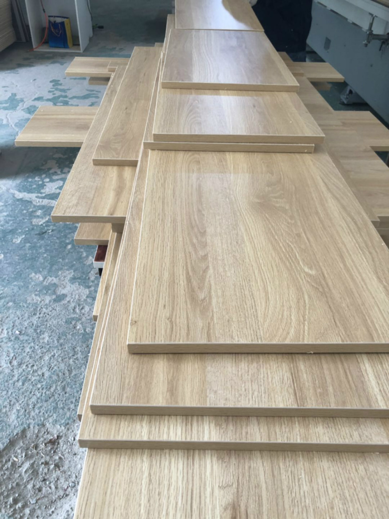 餐邊柜電視柜玄關及榻榻米開始裁板了,板材使用清水橡木原木色制作 ,裁出來的板沒有爆邊。