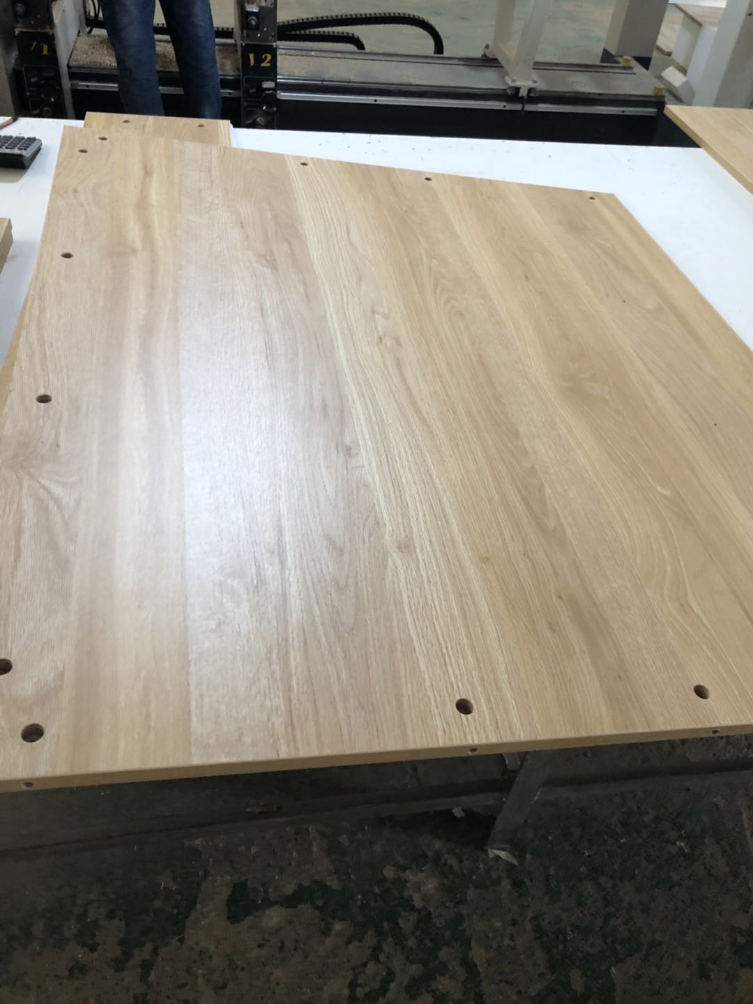 所有的板材基本上封邊完成了,開始打孔了,用專門的設備封邊打孔,封邊壓的緊實,打的孔圓潤沒有爆邊~