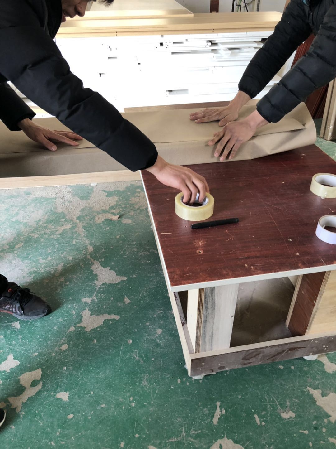 開始制作了,裁板中,板材使用暖白色平安樹實木多層板E0級制作,有高級的藍光防偽標識哦