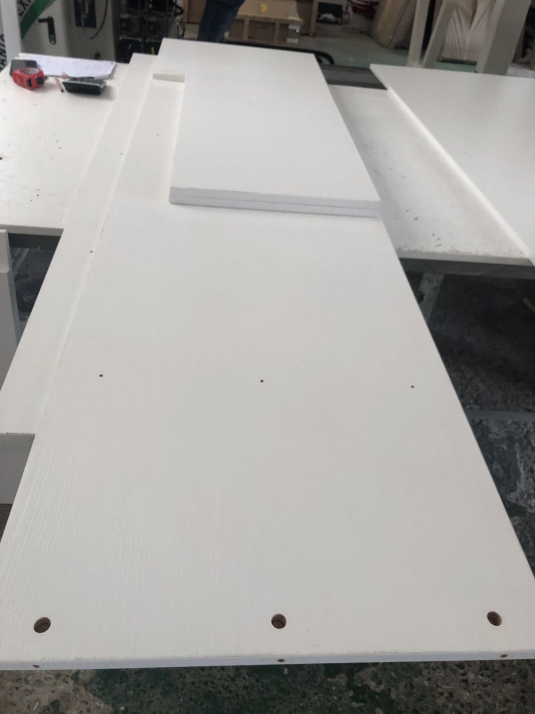 所有的柜體歸類好擺放有序,待打孔中,使用專業設備打孔,打出來的孔圓潤,沒有爆邊~