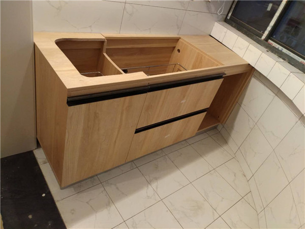 柜子已經裝好啦,還差臺面了,清水橡木色柜體配上暖白色柜門的經典搭配,效果很百搭哦!