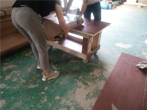 門板開始打包了,師傅們速度蠻快的,打包的時候師傅們都是用牛皮紙把板材的兩邊都包住,以防運輸過程中不小心磕碰到