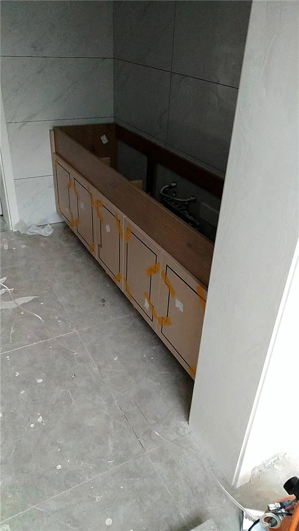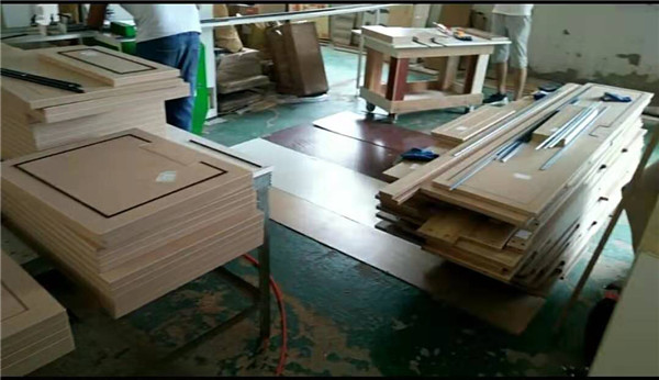 柜體前兩天已經安全送到客戶家了,這兩天正在安裝,在柜體安裝的同時,柜門師傅們也在努力的加工著,
