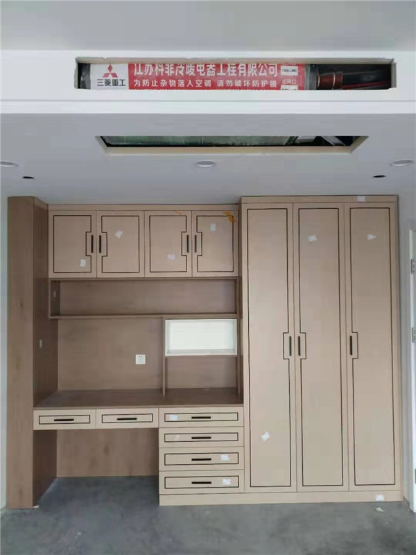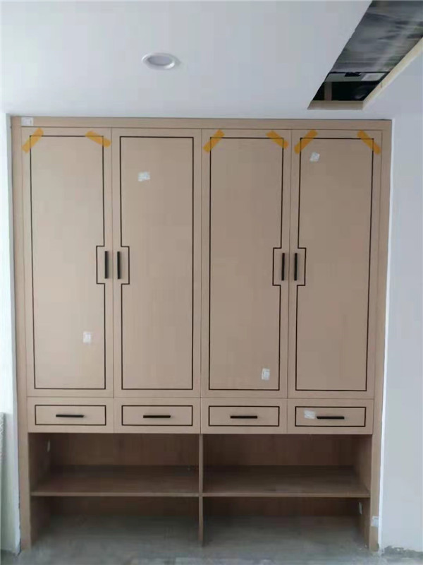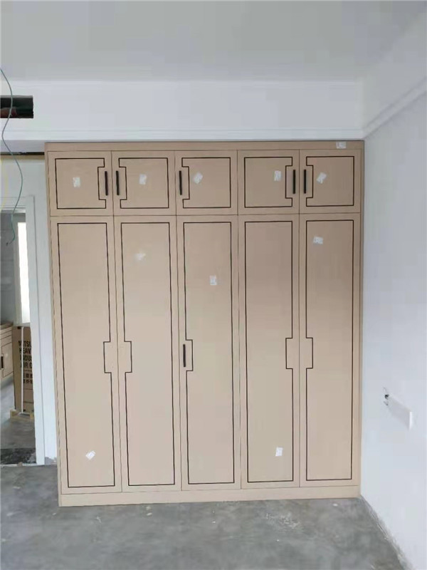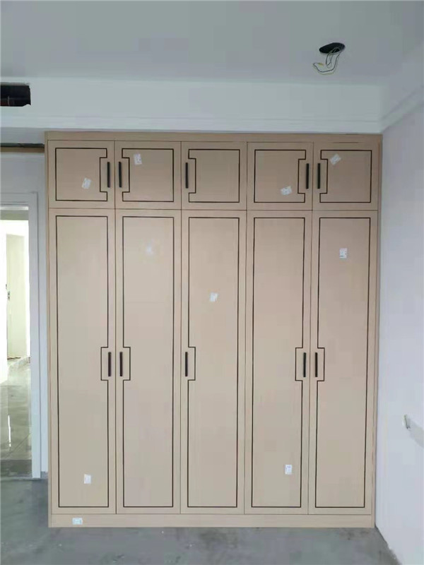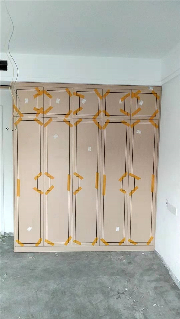 客戶家裝修的是現代輕奢風,所以柜門采用的是實木多層板鑲嵌黑色線條,工藝相對比較復雜,