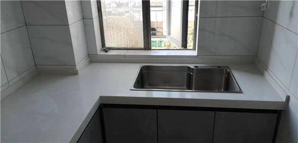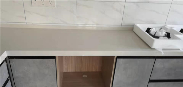 櫥柜臺面早早就已經安裝好了,現場蠻整潔的,上圖