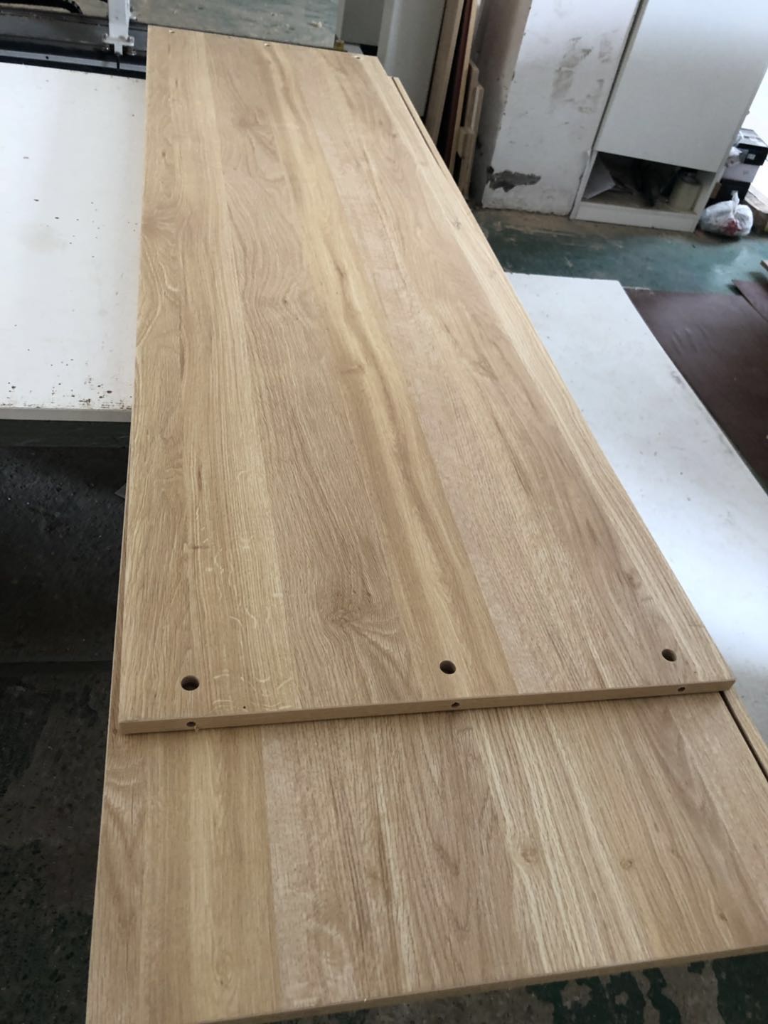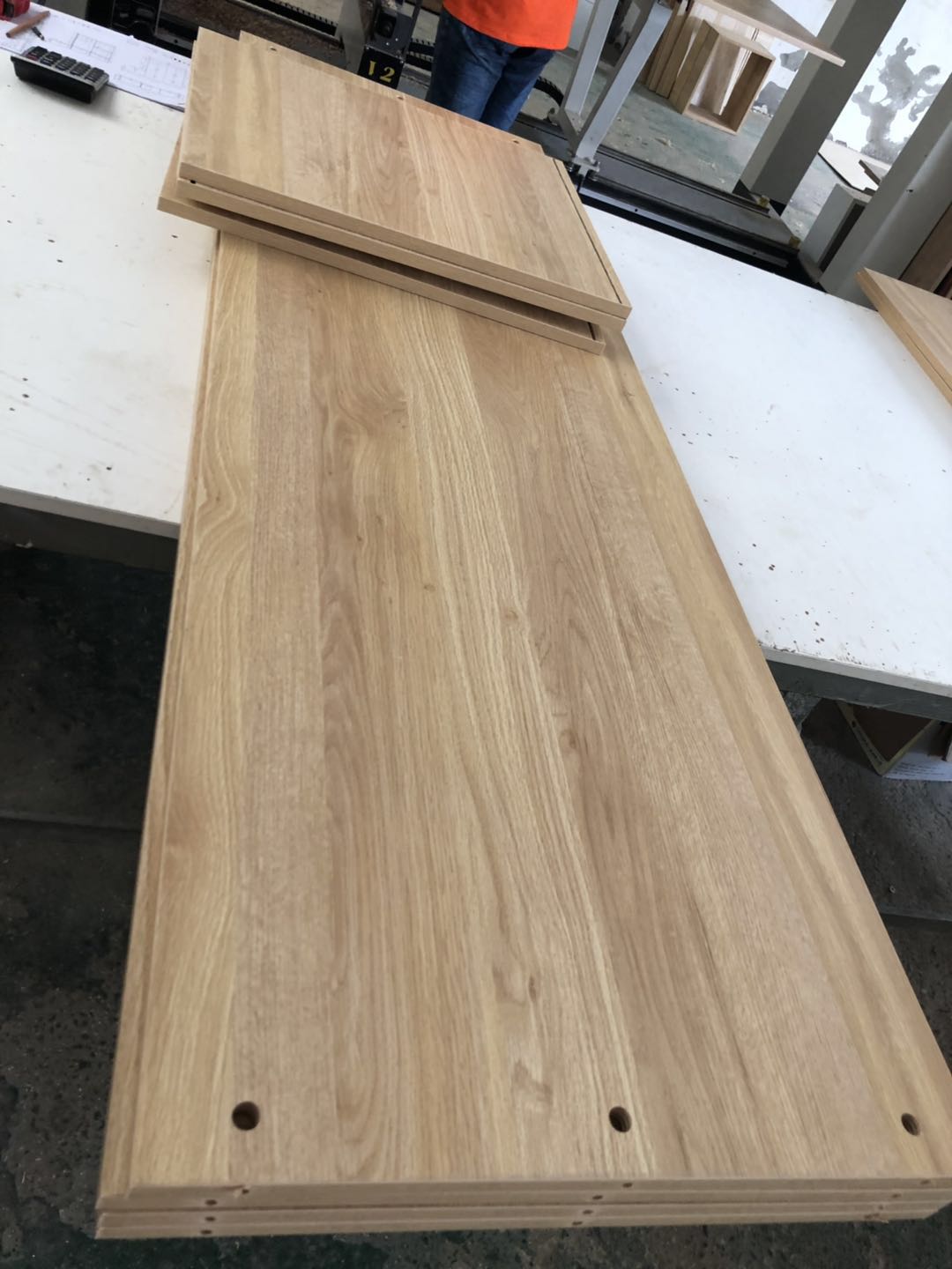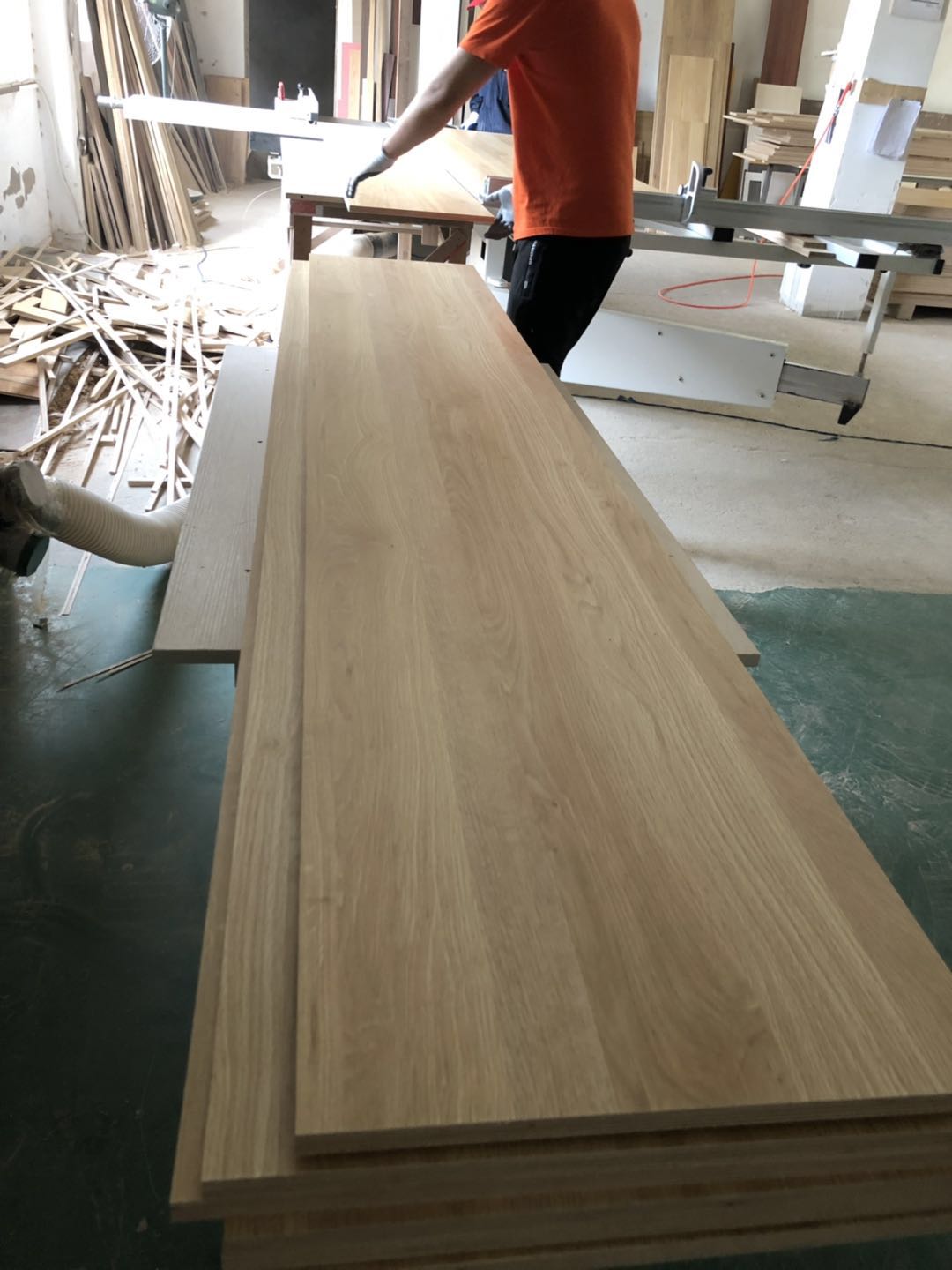 開始制作了,衣柜裁板中,板材使用平安樹清水橡木E0級制作,有高級藍光防偽標識哦
