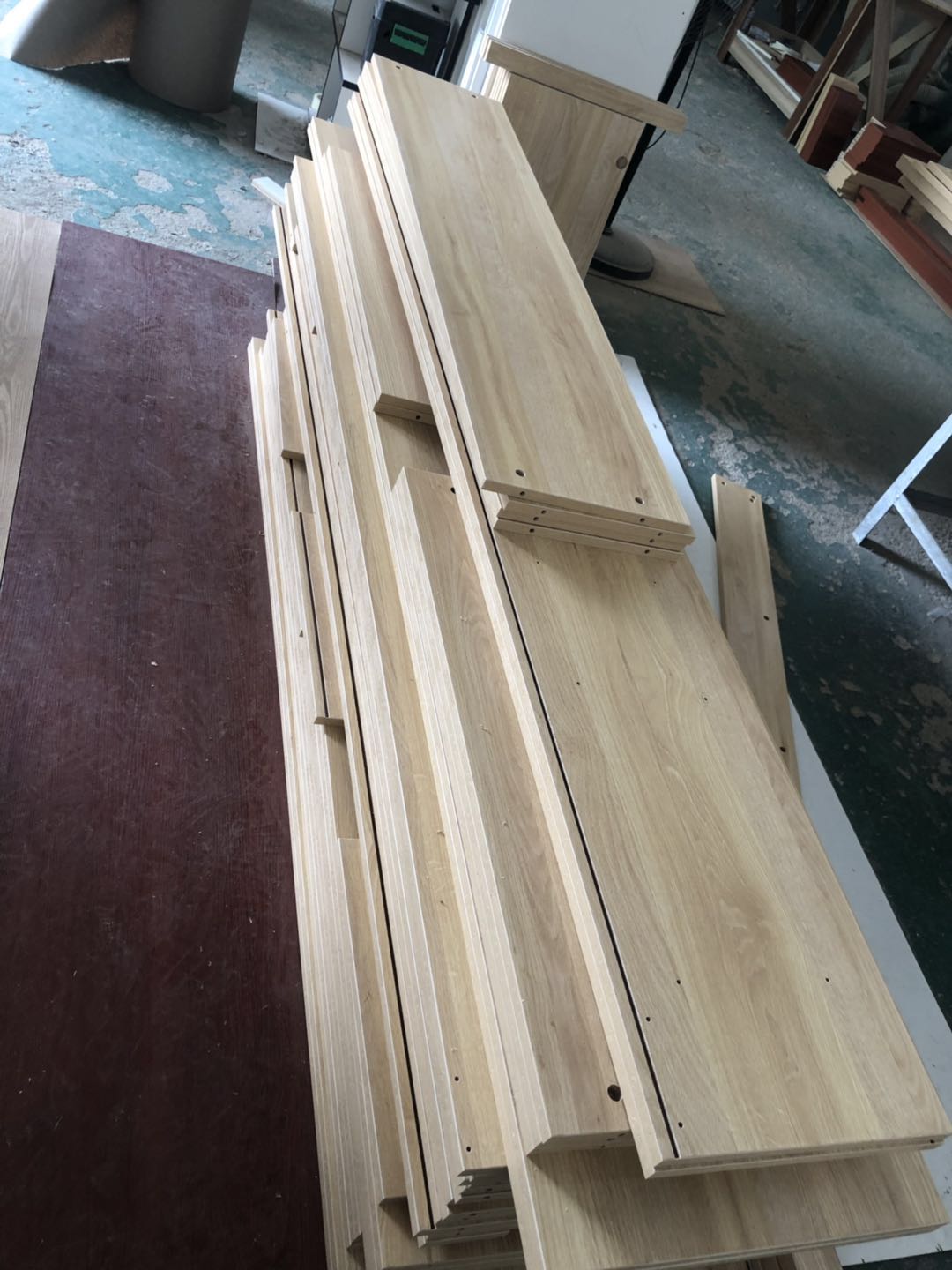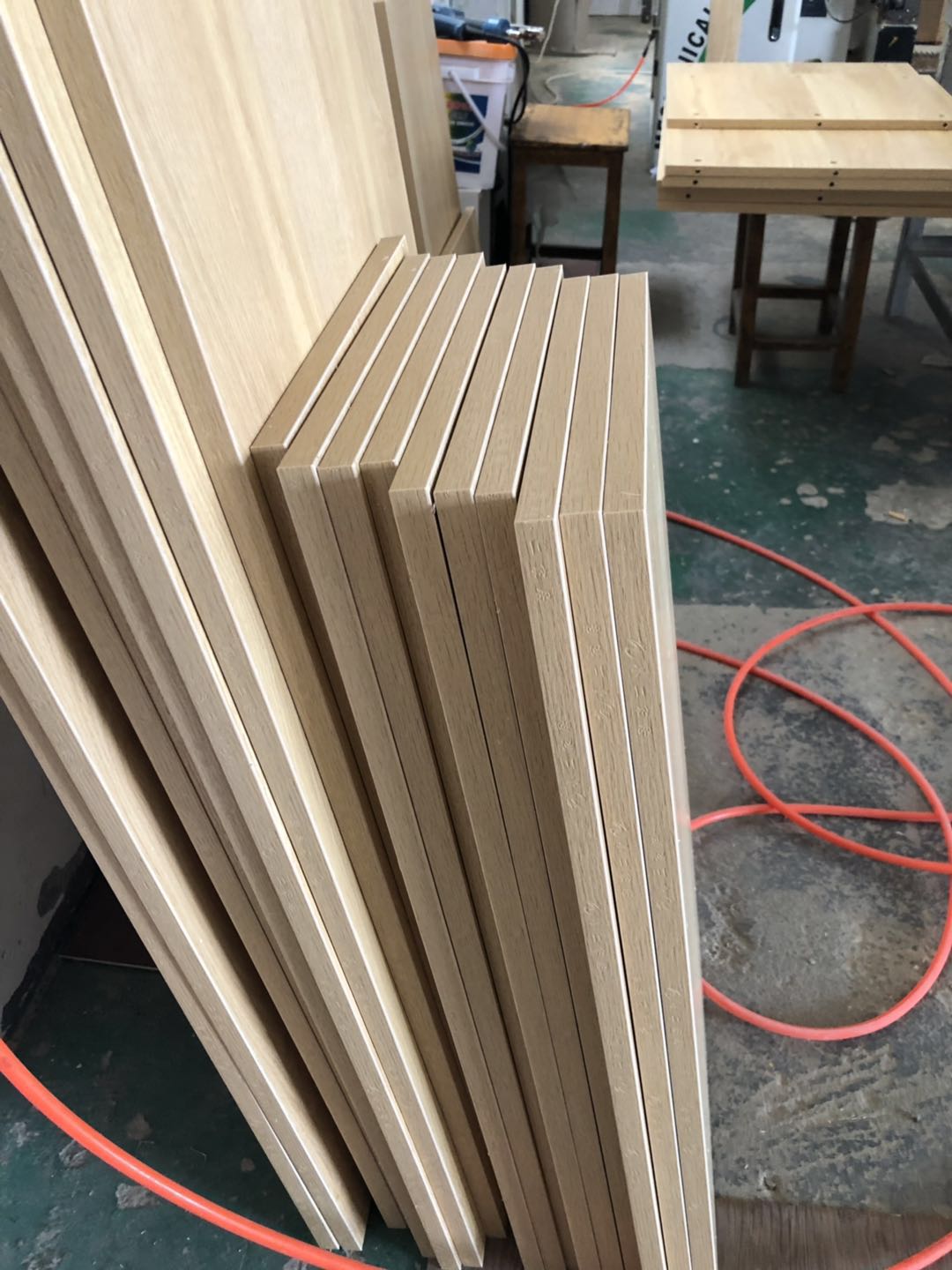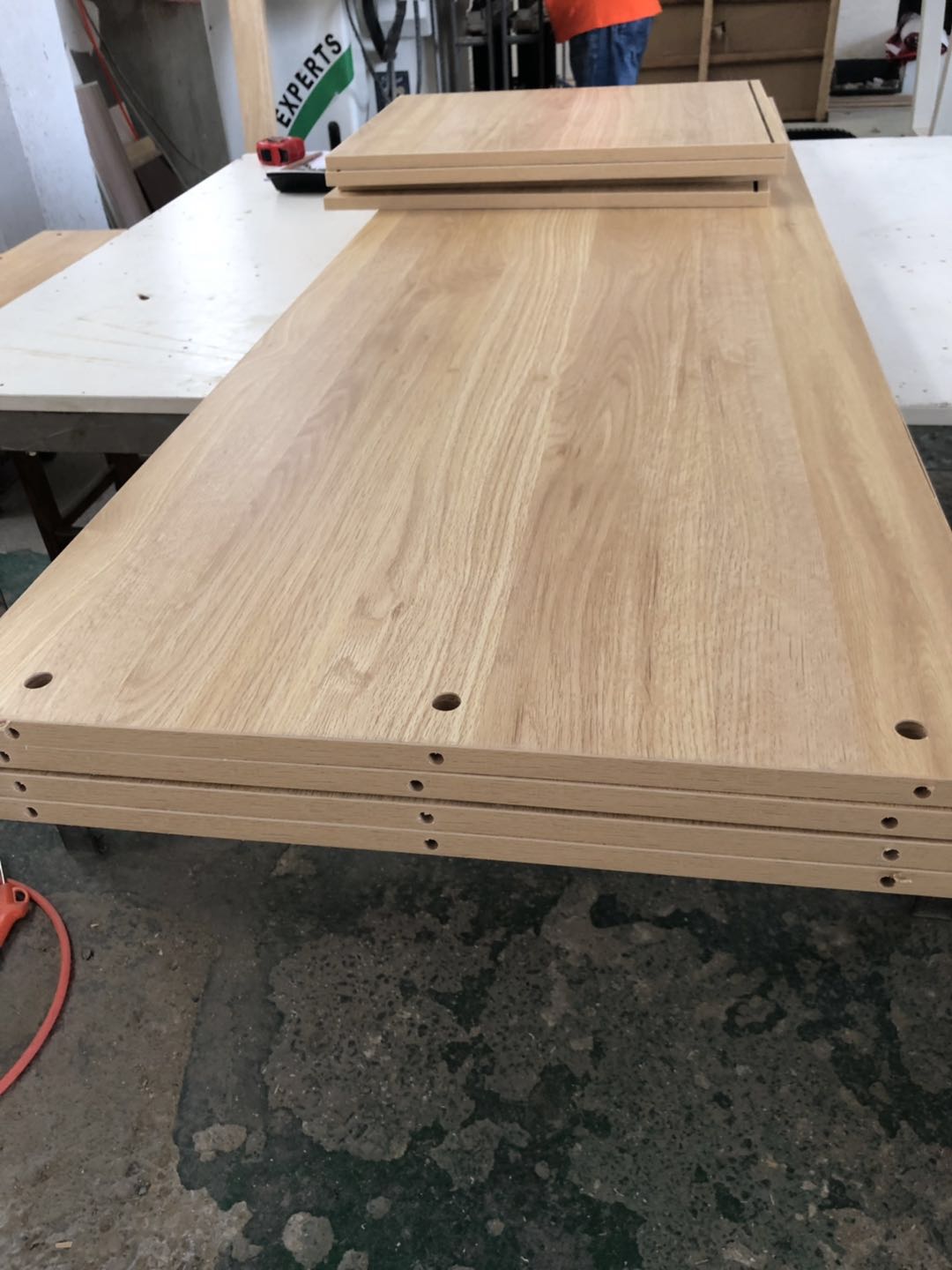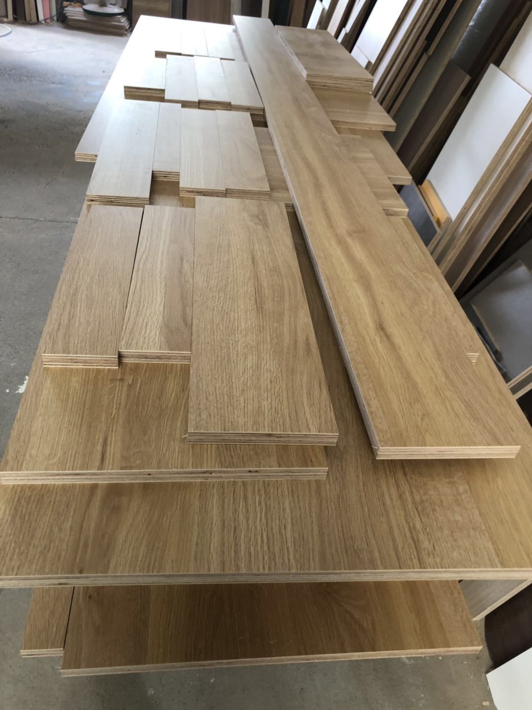 開始制作了,衣柜裁板中,板材使用平安樹清水橡木E0級制作,有高級藍光防偽標識哦