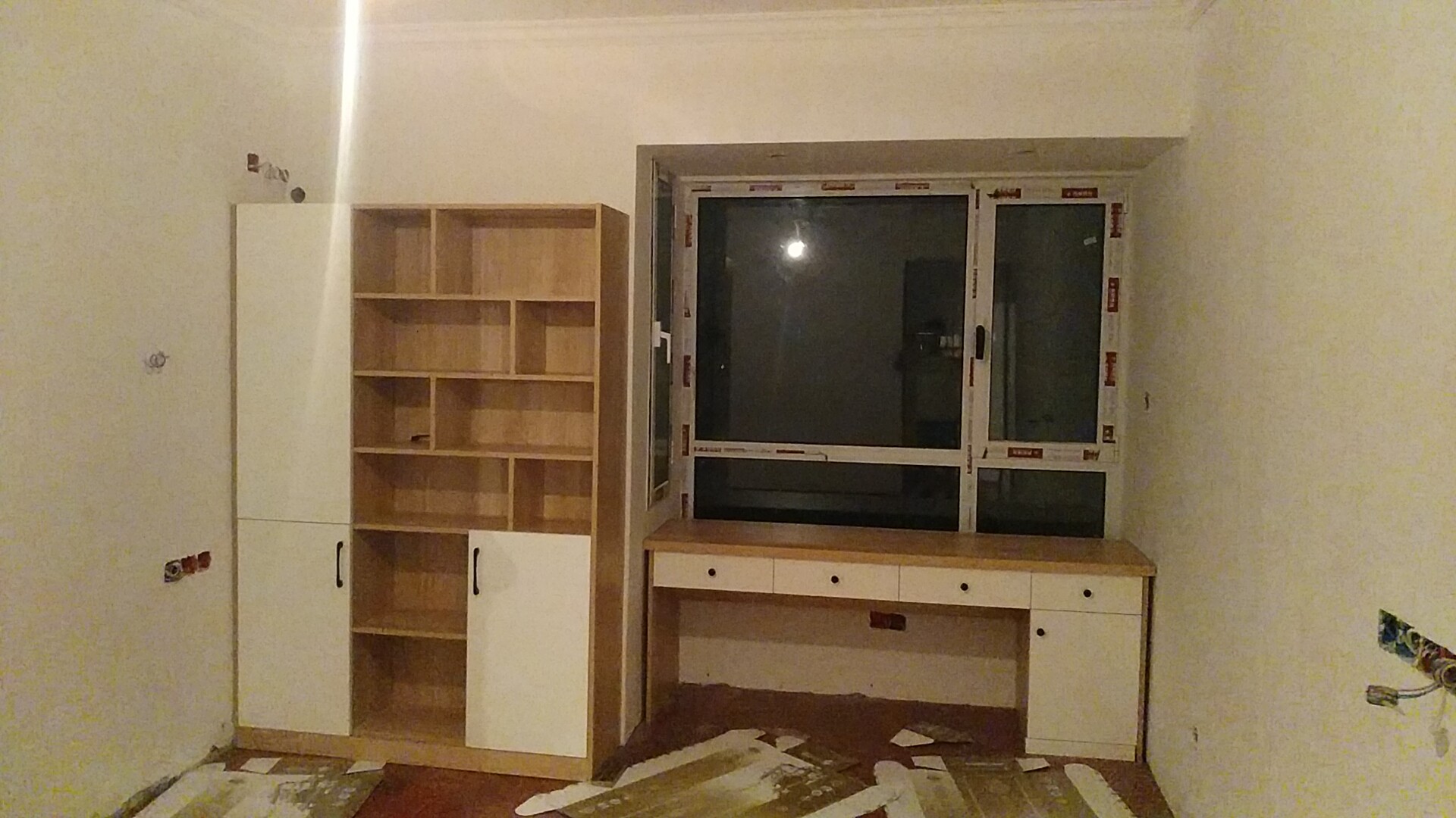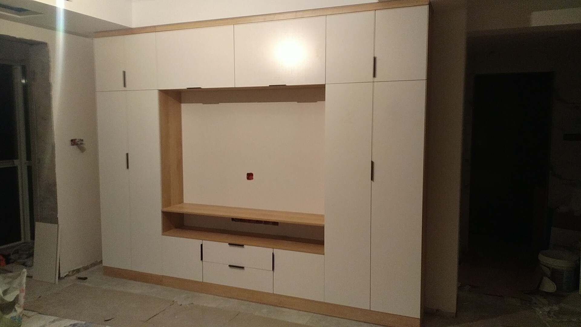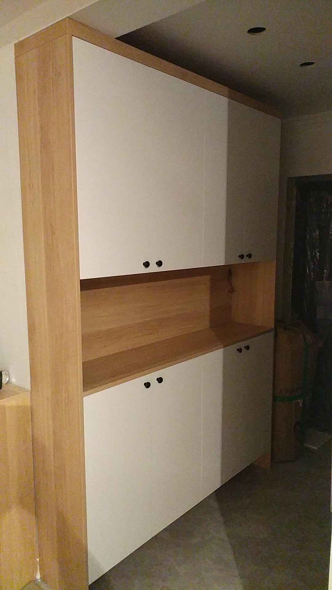 來一波師傅們安裝的終成果,原木色配白色,經典配色,百看不厭,好看吧,師傅們辛苦了。