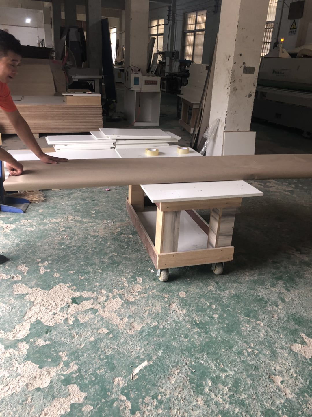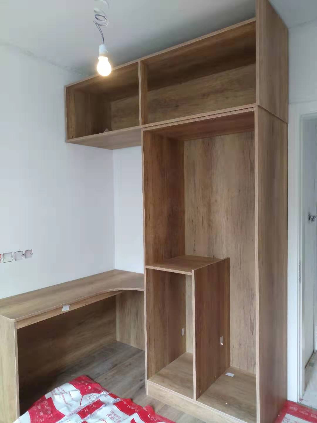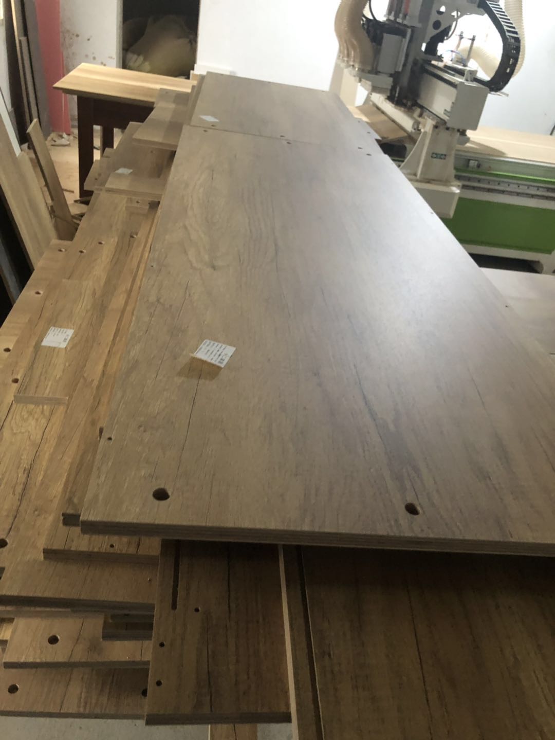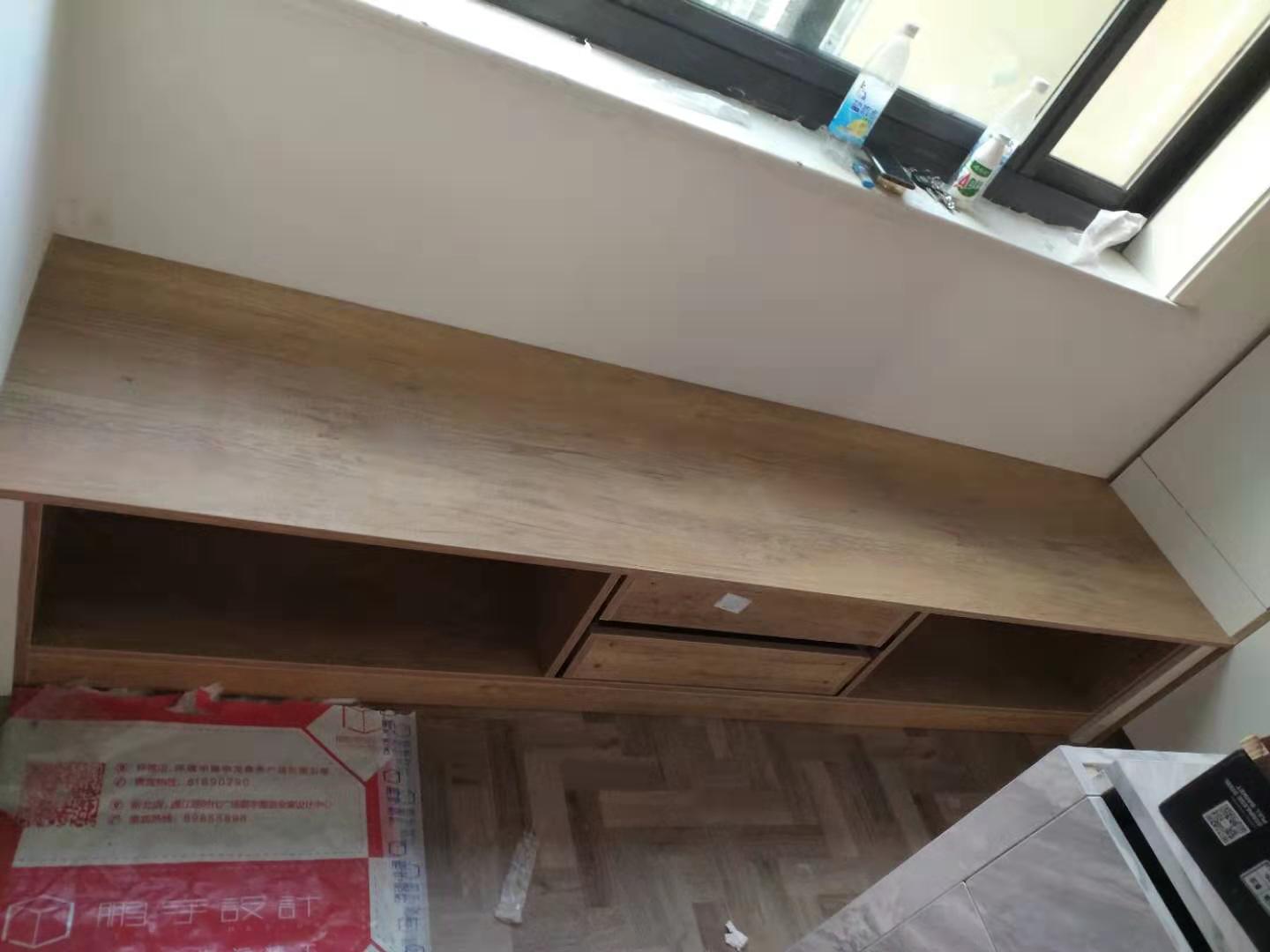 開始制作了,板材使用平安樹實木多層仿古布紋E0級制作,真材實料,有高級的藍光防偽標識,因天氣下雨的原因,室內有點暗拍出來的效果有色差,實物顏色以色卡上的顏色為準。
