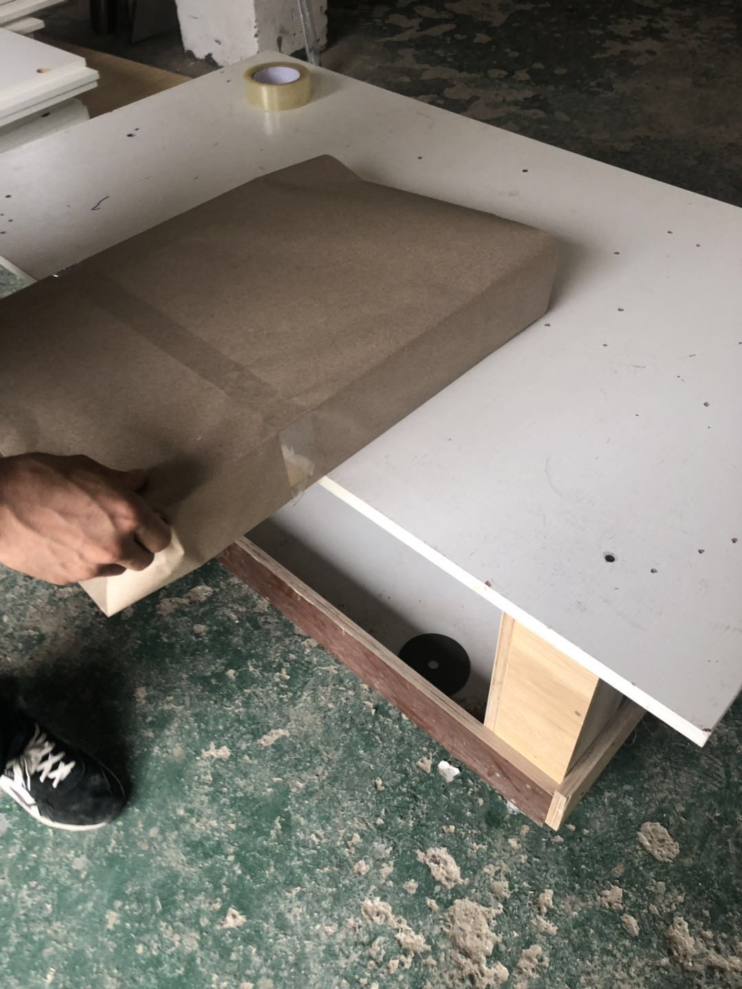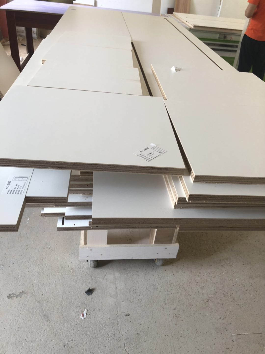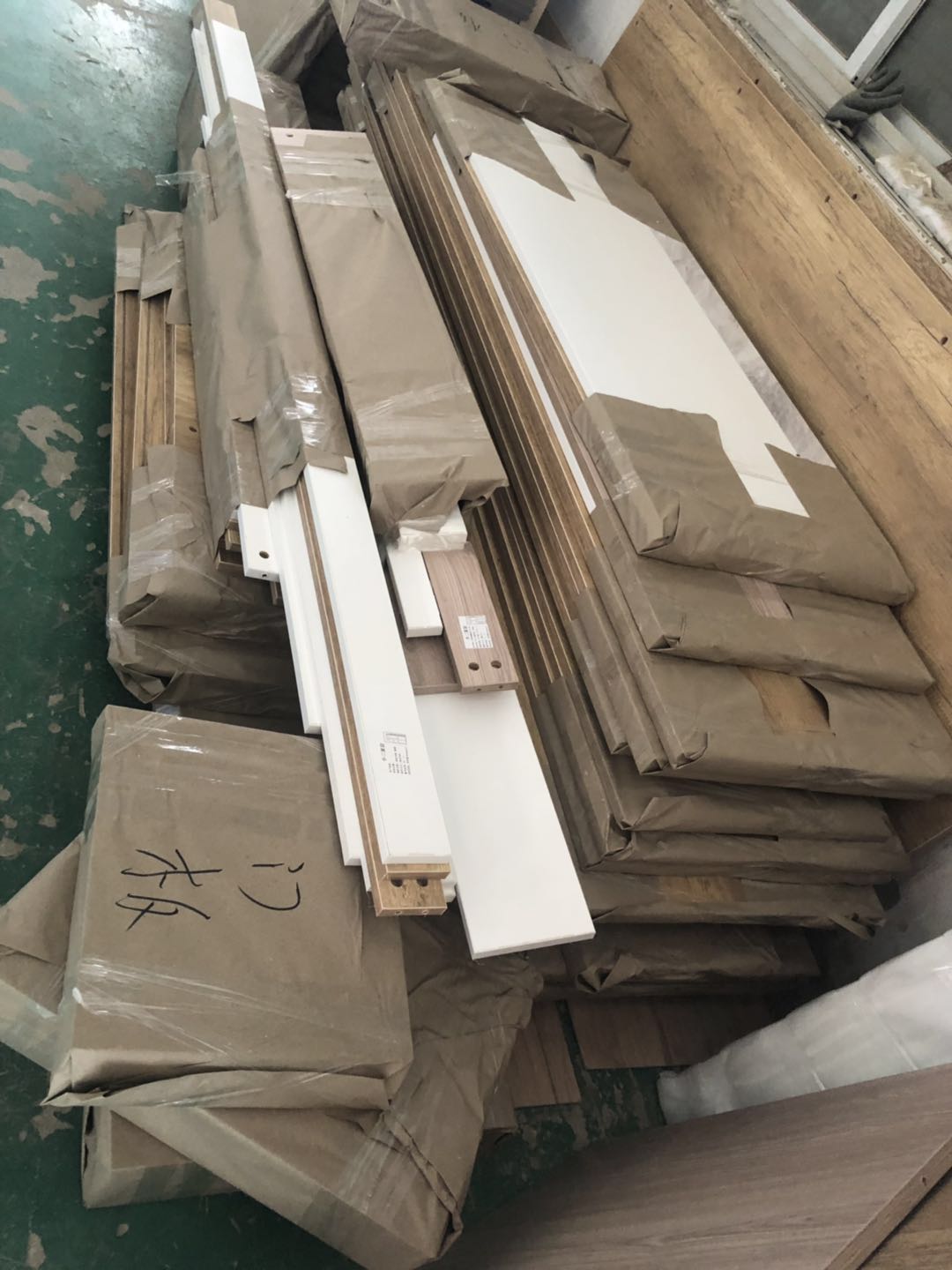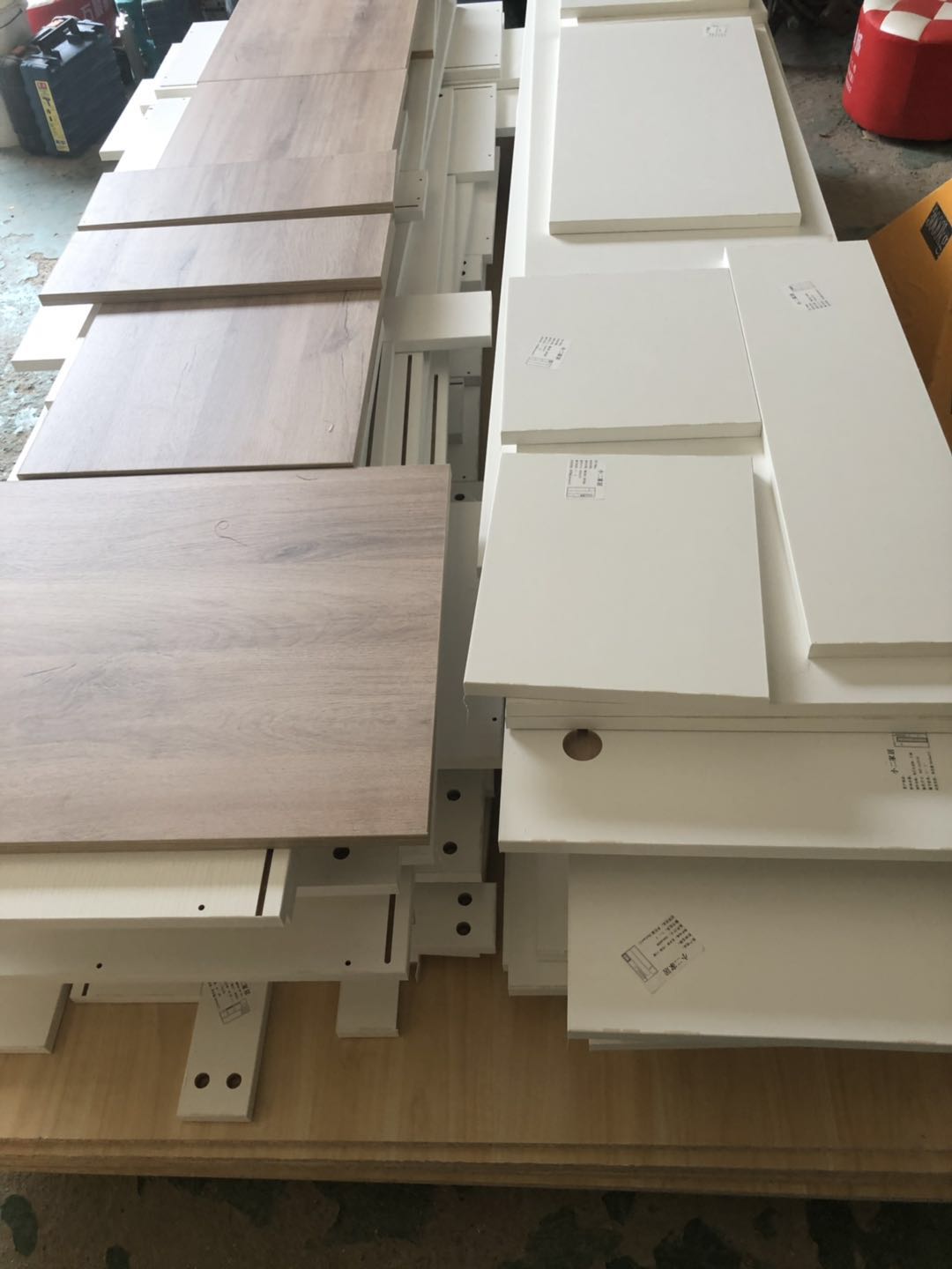 開始制作了,板材使用平安樹實木多層仿古布紋E0級制作,真材實料,有高級的藍光防偽標識,因天氣下雨的原因,室內有點暗拍出來的效果有色差,實物顏色以色卡上的顏色為準。