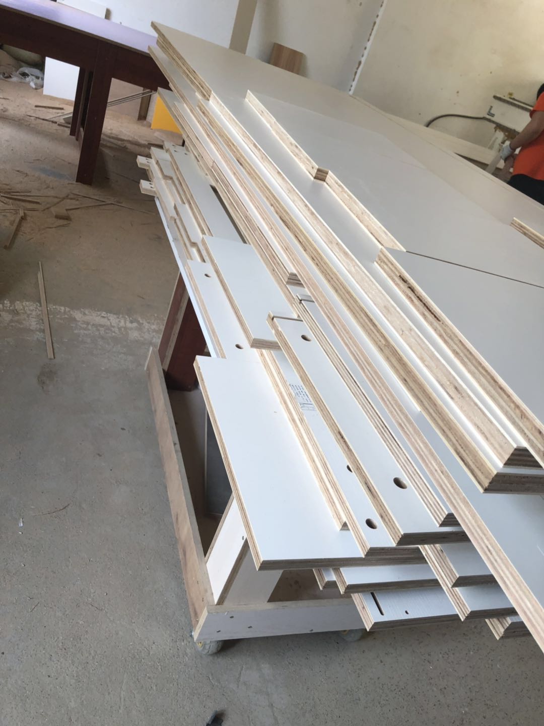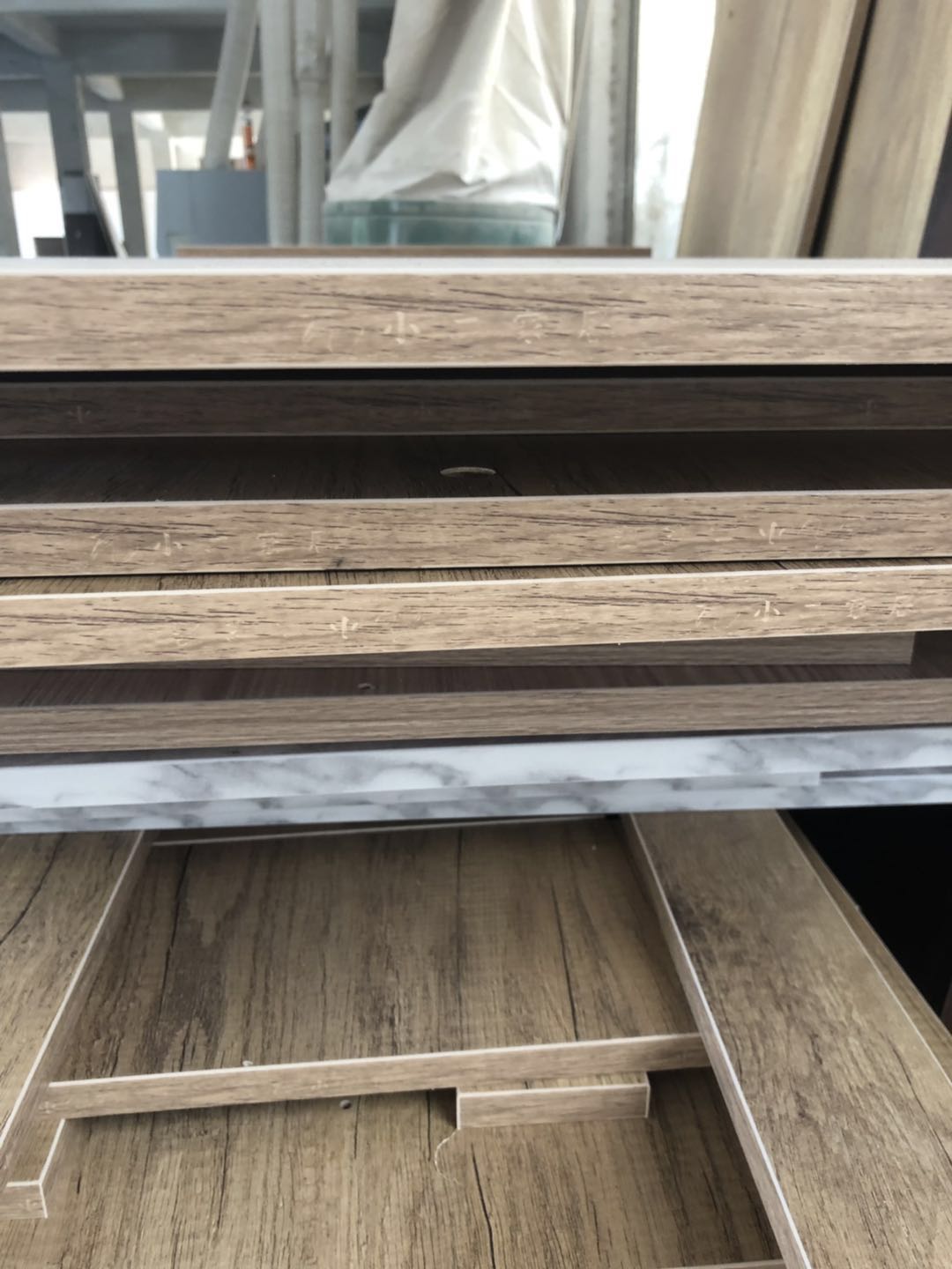 圖1-4是門板,板材使用平安樹實木多層暖白色制作,圖5-9是柜體已經封完邊了,采用法國波士熱熔顆粒膠,設備溫度達到200°C封出來的邊牢固,沒有爆邊~封邊條上有小二家居的Logo哦