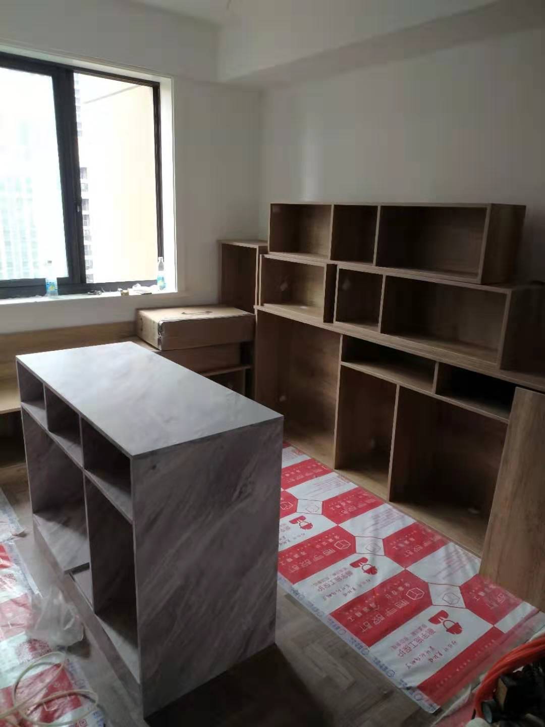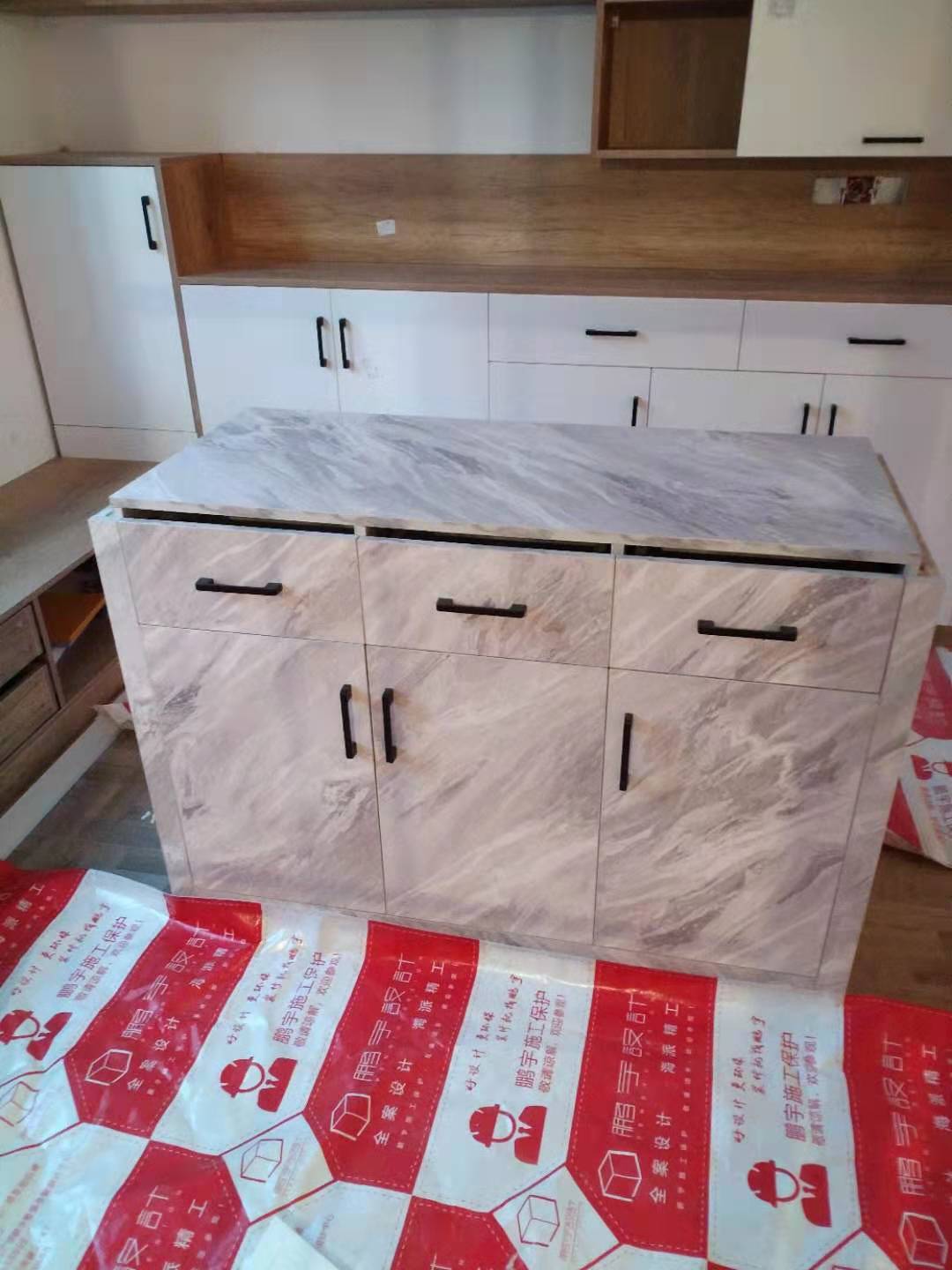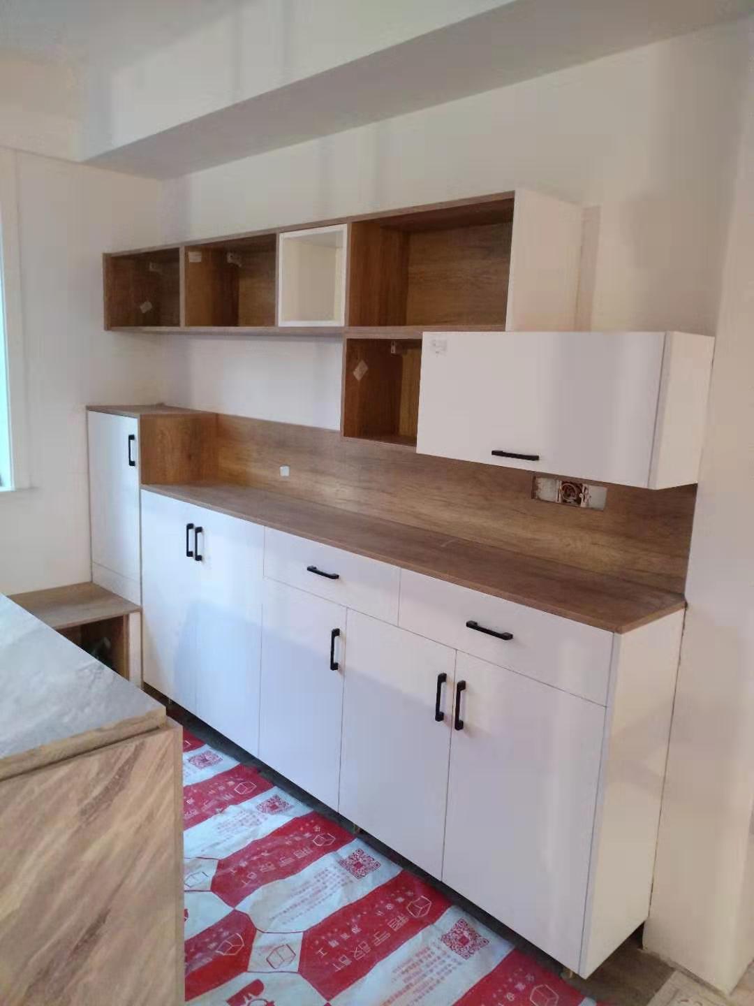 經過兩天的努力,所有的柜子都安裝完成,還有一些小細節到時候收尾一起解決,不得不說小姐姐的眼光不錯,島臺和餐邊柜顏值在線,選的顏色做出來的效果都美美噠,等畢業了在拍一波美膩的照片。