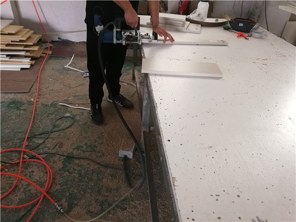 客戶家板材不多已經開始封邊啦,采用法國波士熱熔顆粒膠,設備溫度達到200°C封出來的邊牢固,沒有爆邊,完美無瑕。