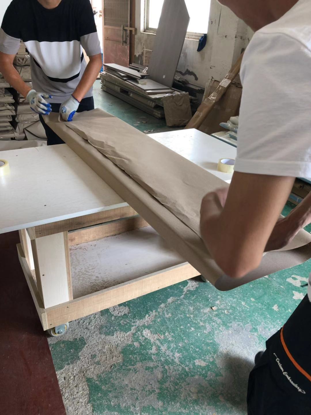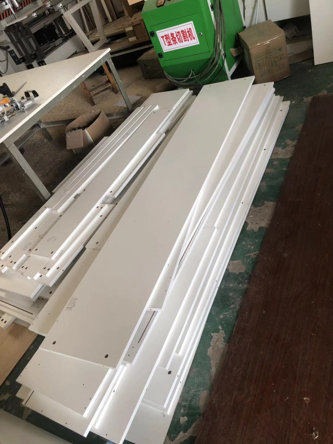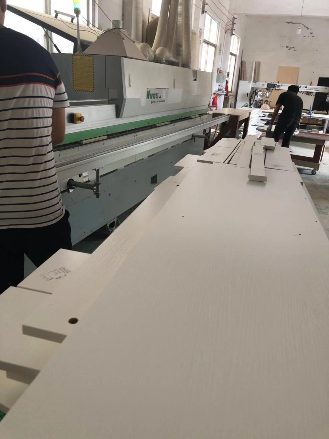 漫長的等待,今天終于開板了,板材使用平安樹實木多層E0級制做,真材實料,有高級的藍(lán)光防偽標(biāo)識,裁完板等待封邊