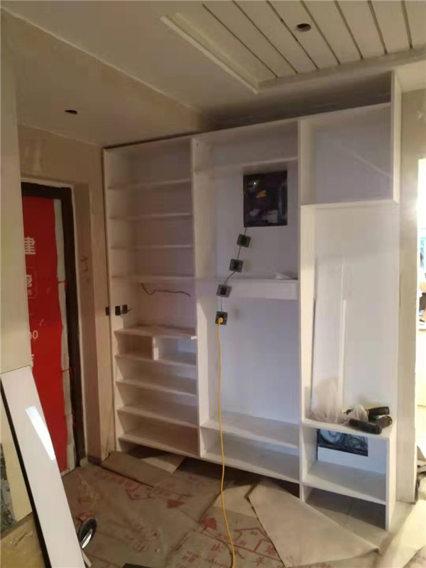 門板基本安裝的差不多了,等全部掛好后師傅們在慢慢調(diào)節(jié)細(xì)節(jié),進(jìn)門鞋柜設(shè)計蠻好的,進(jìn)門可以放放鑰匙之類的,里面還設(shè)計了換鞋凳,