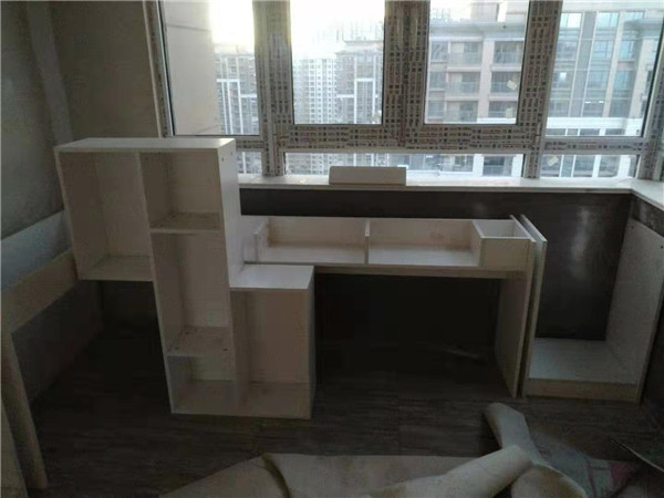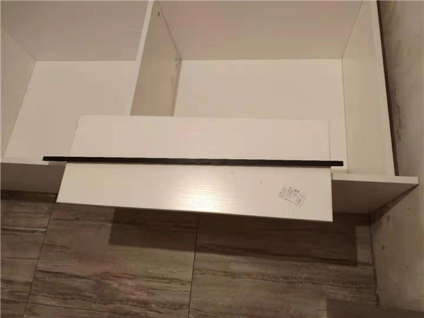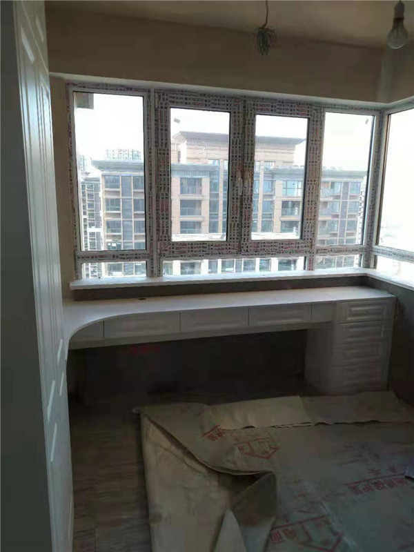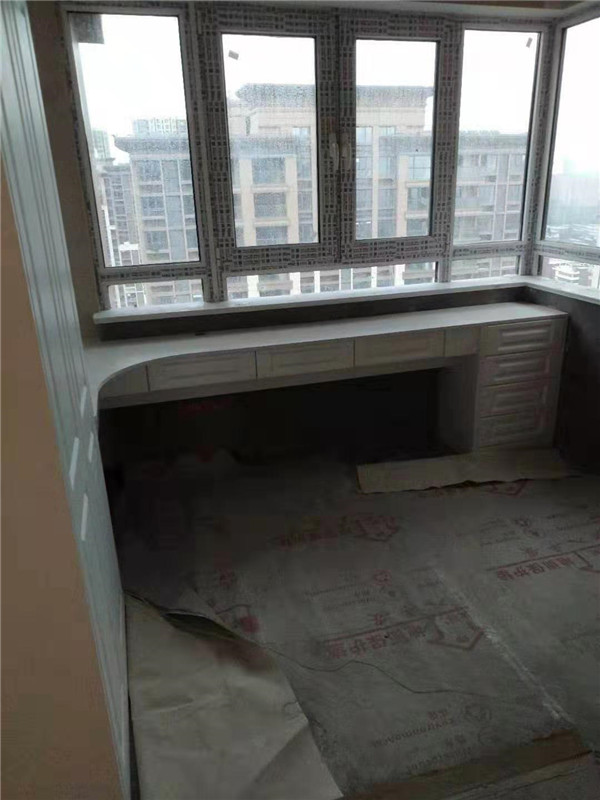換鞋再也不用站著蹲著了。客戶家還有一個大的書桌就在窗戶旁邊視野也是一級棒,美景盡收眼底。陽臺臺面采用的一體盆,