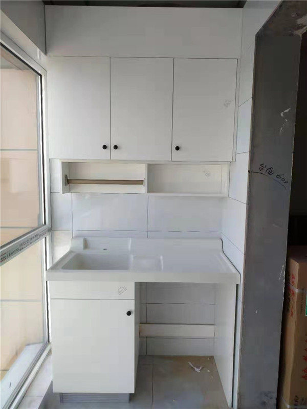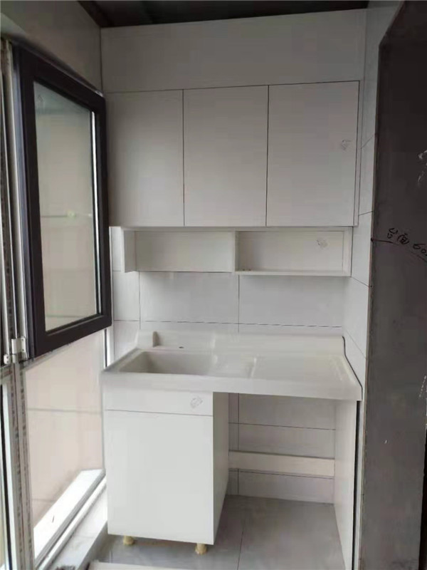 上面還自帶搓衣板的哦!是不是感覺很實用,吊柜下面設(shè)計了隔斷上面可以放點經(jīng)常用的東西。