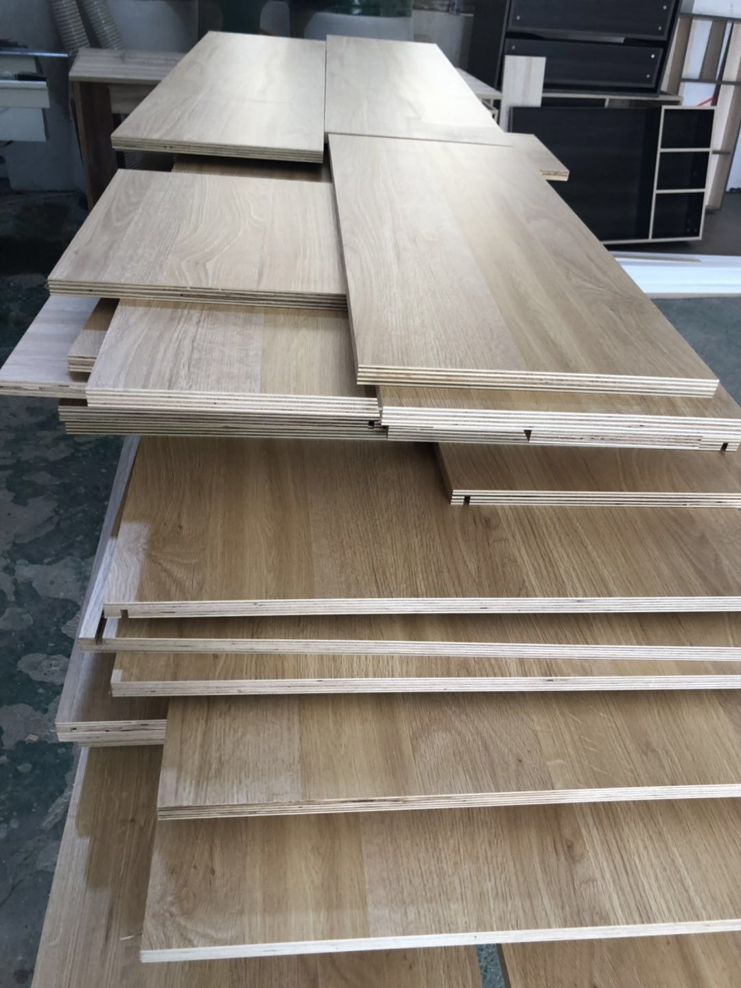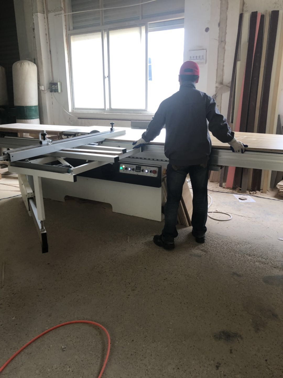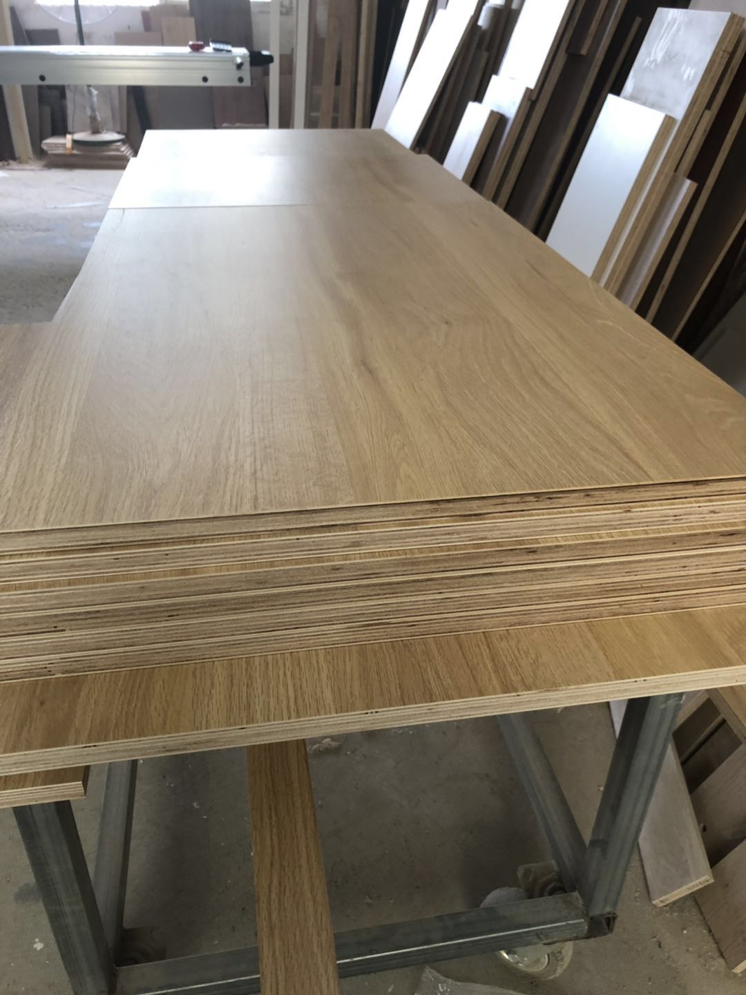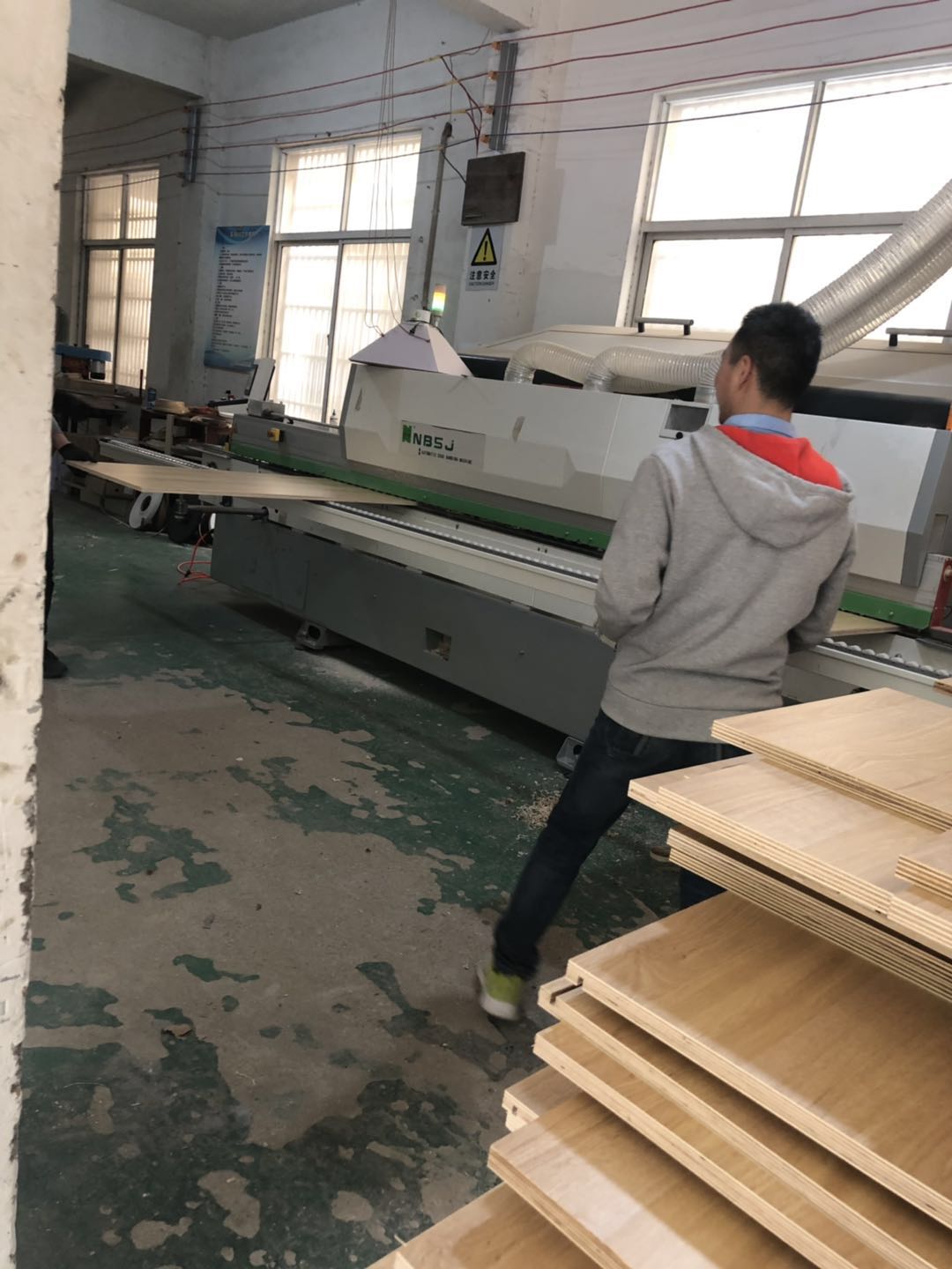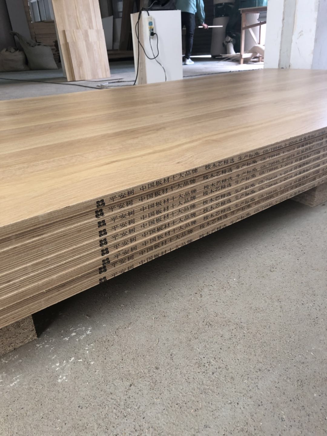 開始制作啦,衣柜裁板中,板材使用平安樹清水橡木E0級制作,有高級的藍光防偽標識哦,