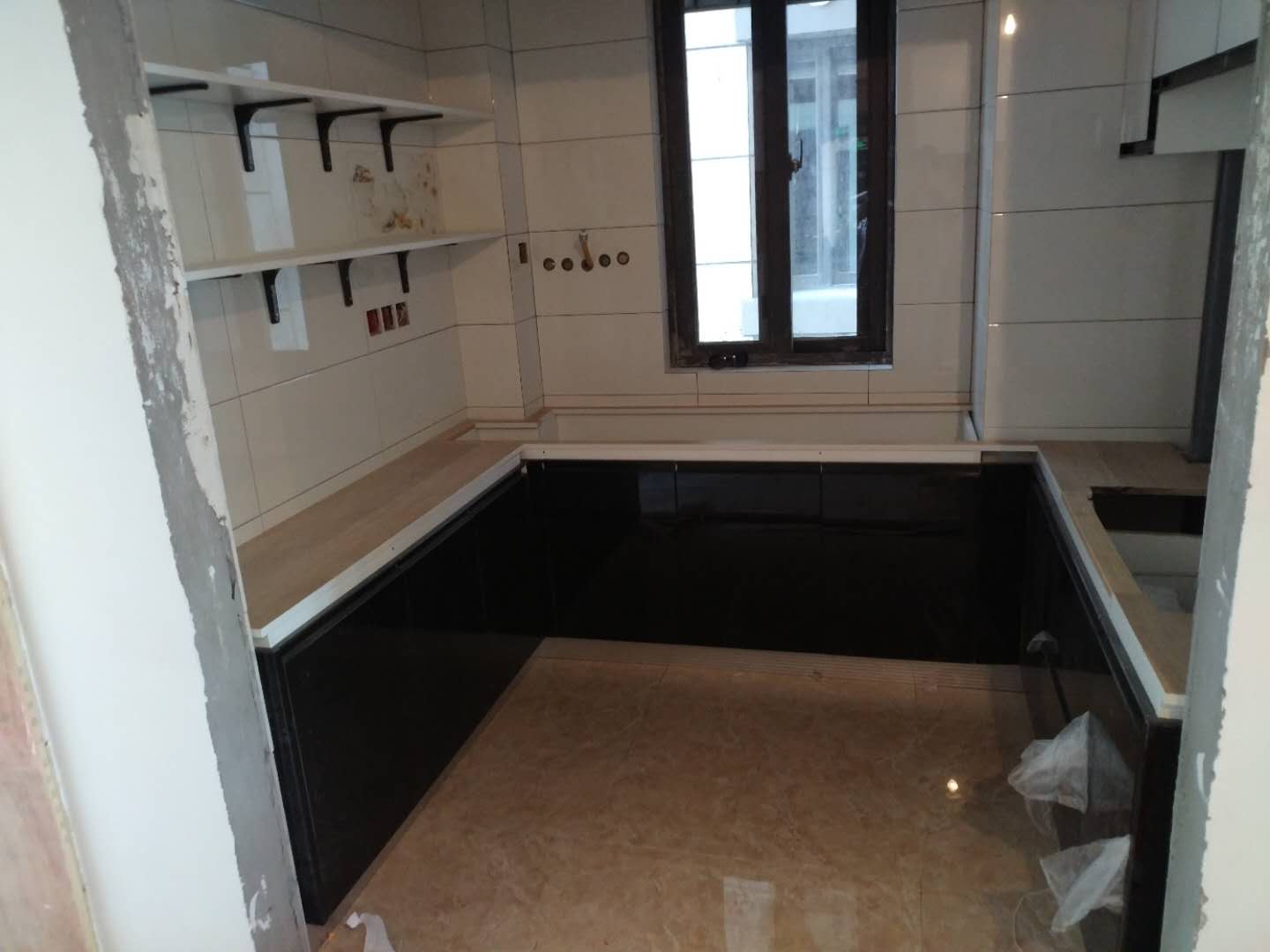 開始安裝啦,ABS尼龍柜腳,海蒂詩導軌,諾米鉸鏈,和居拉手,真材實料,柜子已經拼裝一部分了,師傅們辛苦了