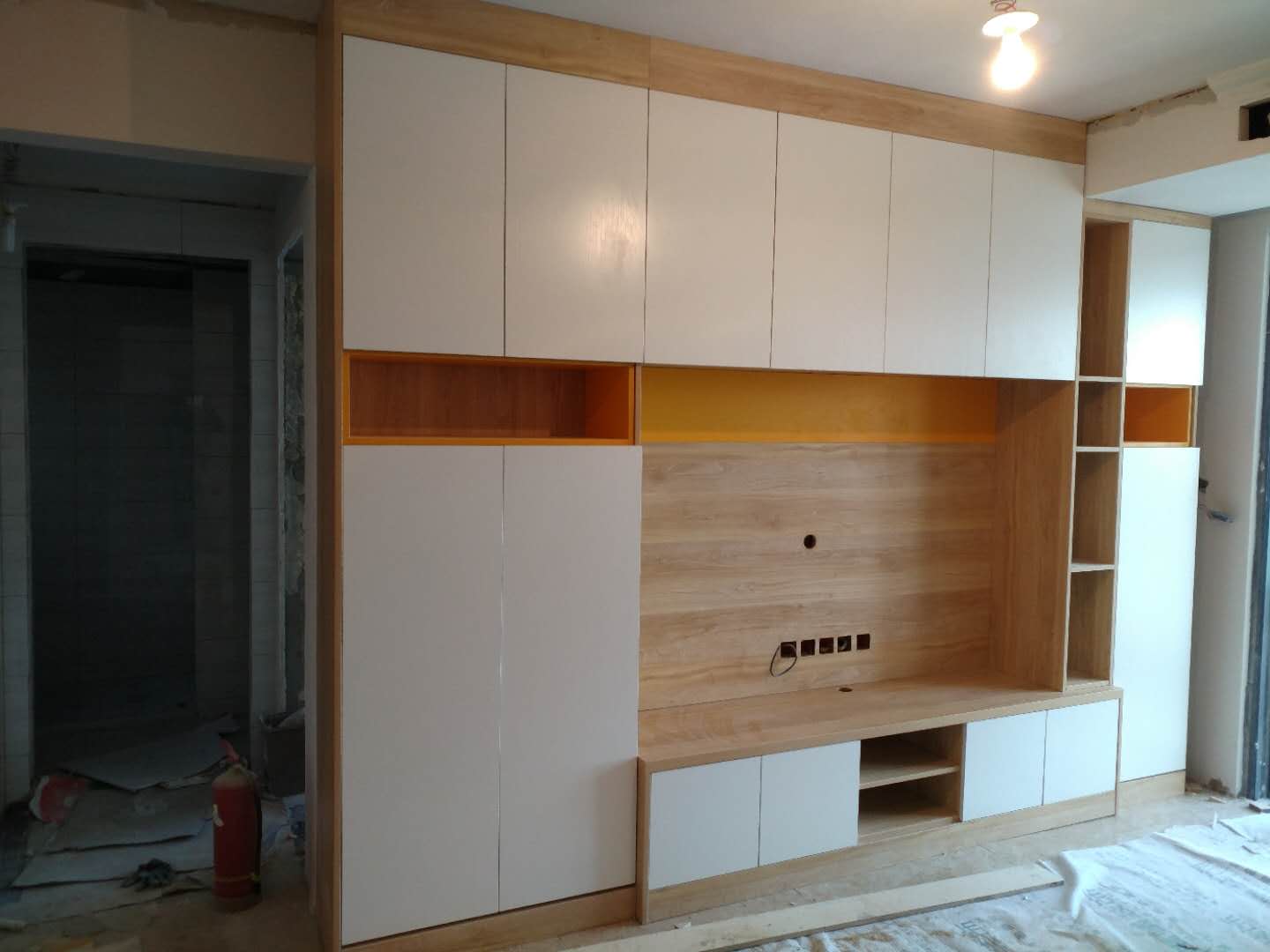 經過師傅們三天的不懈努力,柜子的整體效果出來啦。還挺不錯的,還有點收尾工作,等后面所有東西準備齊全了再去一趟,希望那個時候小姐姐家都收拾干凈啦。