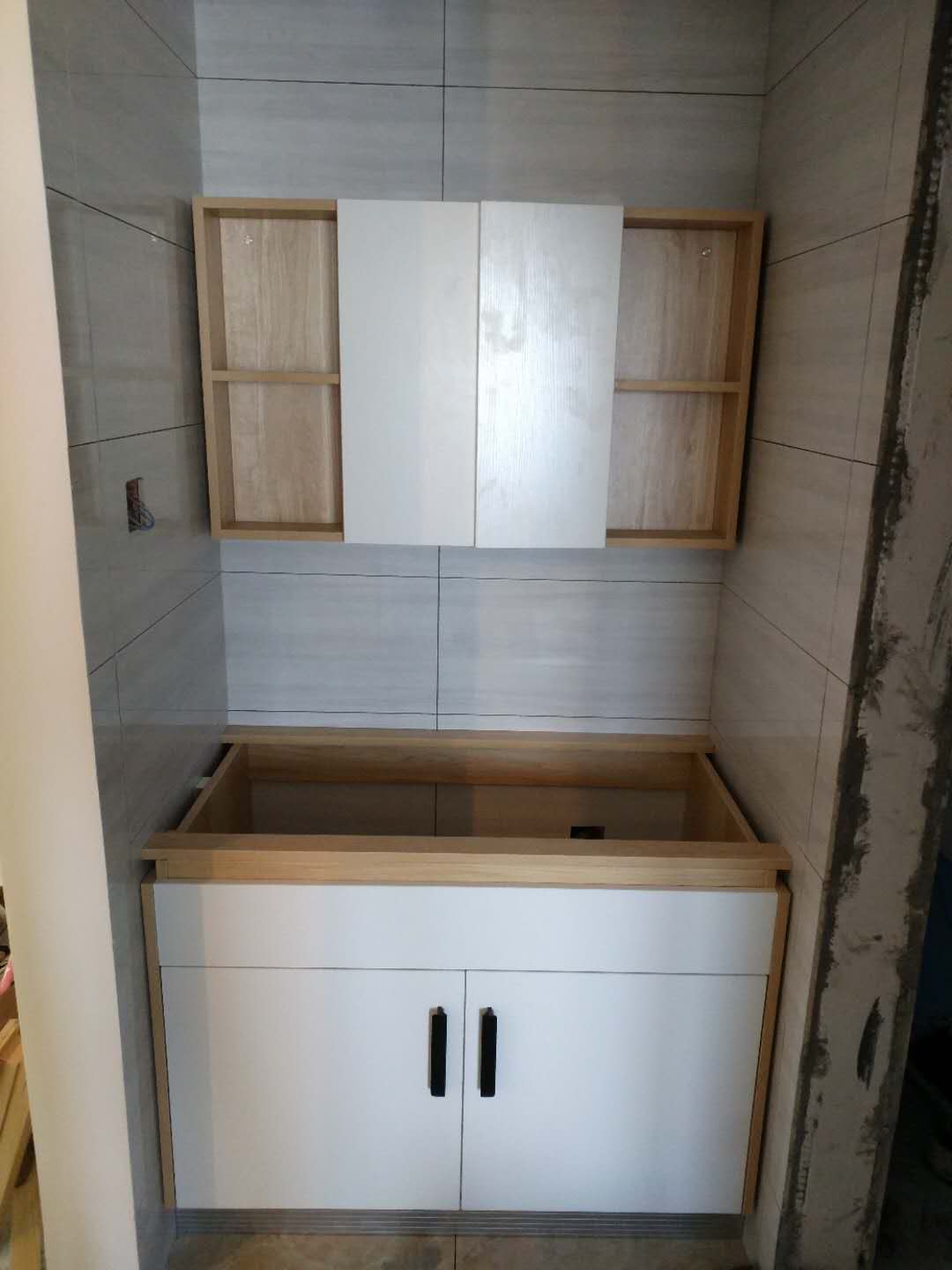 新鮮出爐的照片來了,俗話說三分產品七分安裝,看柜子整體效果安裝師傅手藝不錯哦,點贊。